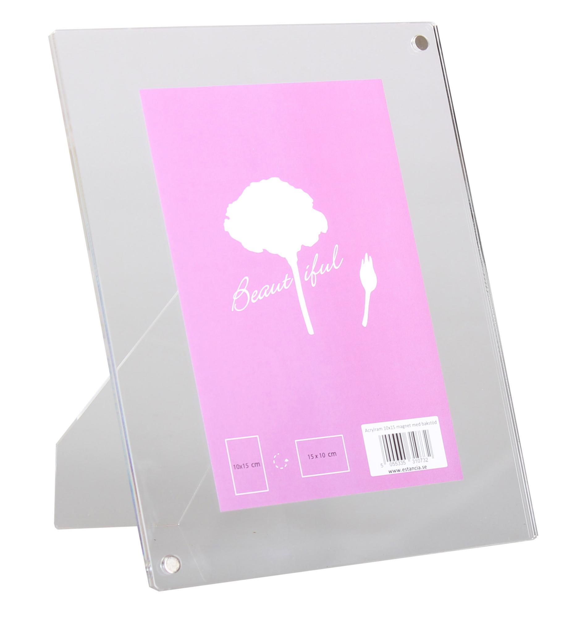 Een acrylaat fotolijst die uit 2 dikke acrylaat plaatjes bestaat, die bij elkaar gehouden worden door magneten. De lijst 15x20 cm dus je kunt er foto's in plaatsen tot 15x20 cm. De grootte van het inlegvel op de afbeelding is 10x15 cm.