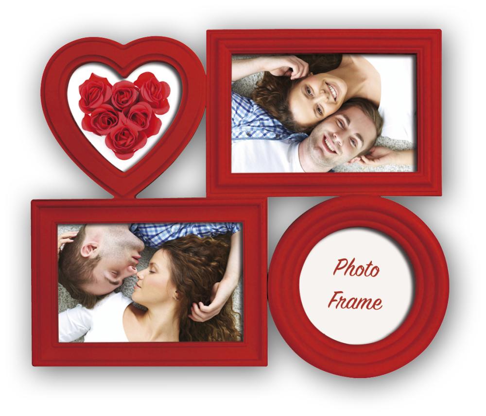 collagekader in een mooie kleur rood en geschikt voor 4 foto's in verschillende maten en vormen. Als je op zoekt bent naar een romantische fotolijst voor je mooiste foto's dan is dit een aanrader.
