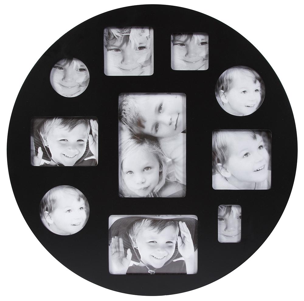 Een ronde, zwarte collagelijst met plaats voor 10 foto's van verschillende groottes. Heel mooi voor een familiecollage!