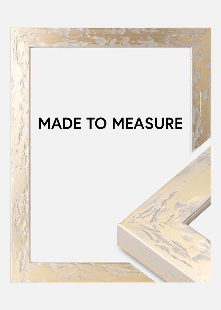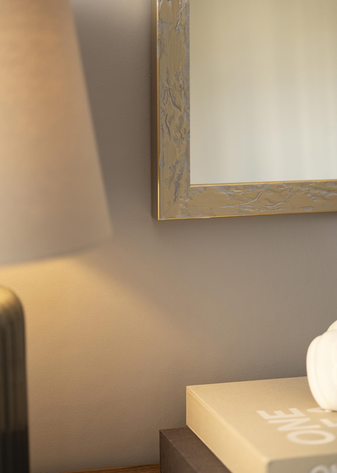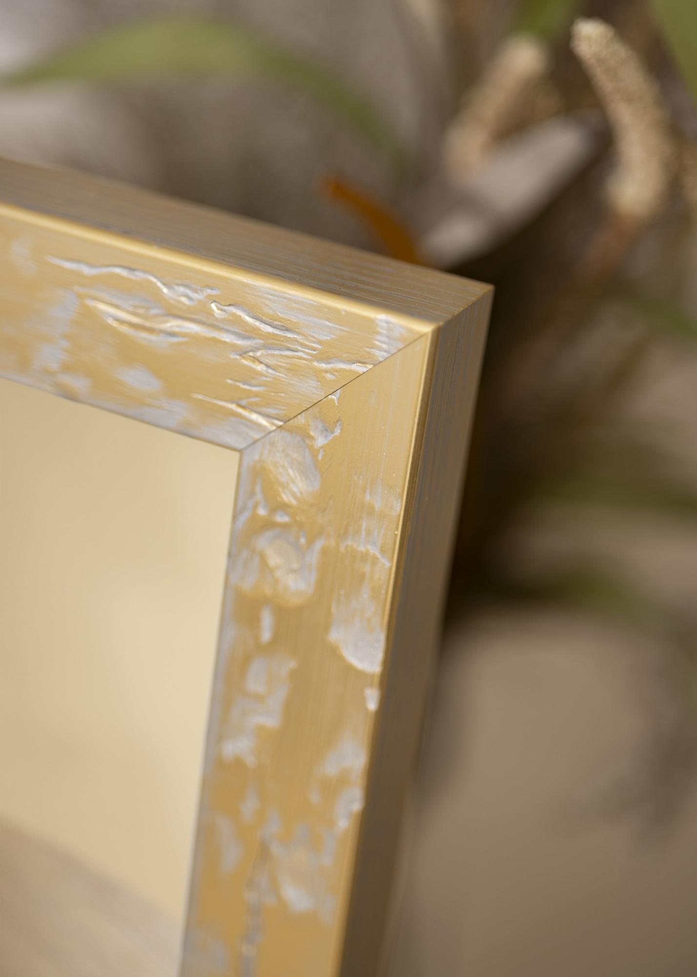 Freja is een mooie gouden lijst met een rand vol zilverkleurige ongelijkmatigheden. Door de combinatie van goud en zilver krijgt Freja een prettige tint die meer naar zilver neigt dan naar goud. Met het diepe profiel van 30mm komt Freja Goud een beetje los van de wand en geeft een lekker 3D-effect. Glas en achterkant zijn inbegrepen.