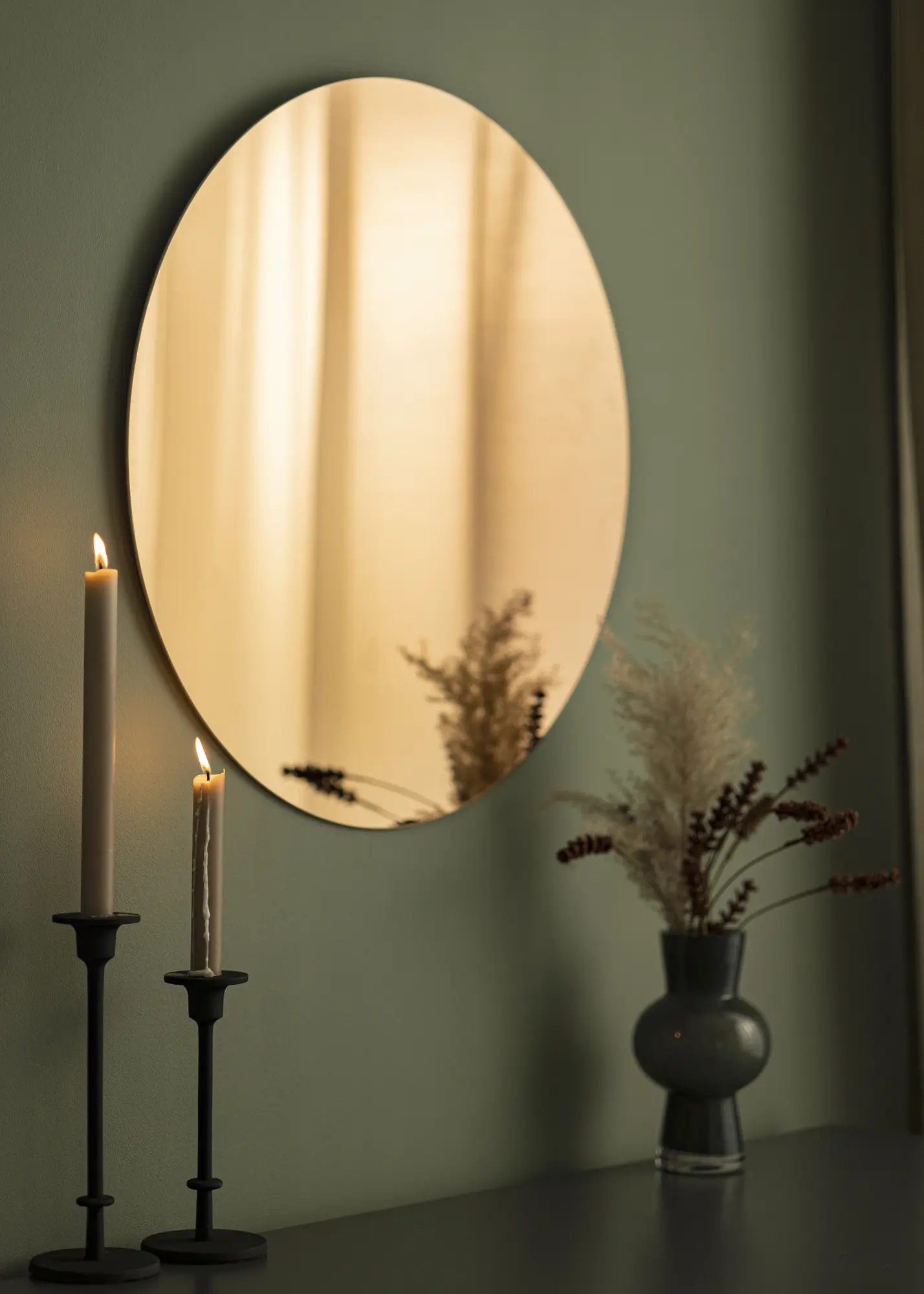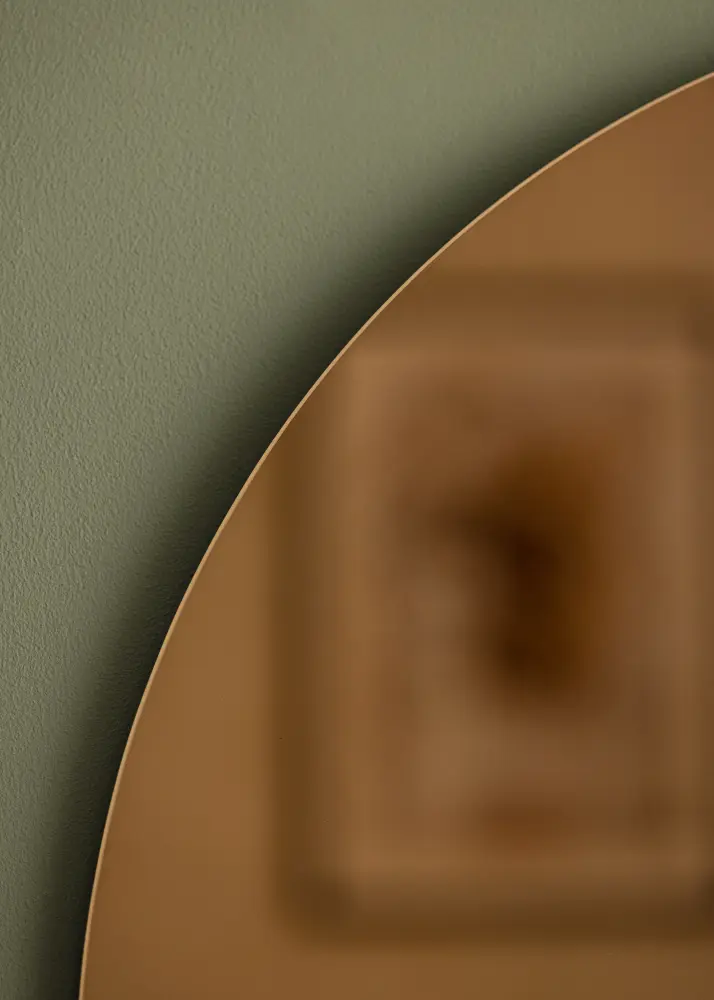 KAILA Ronde Spiegel Rose Gold is een zeer decoratieve ronde spiegel met roségoud getint spiegelglas. De spiegel is bovendien erg dun en heeft een minimalistisch design zonder lijst, waardoor het een zeer trendy en stijlvol interieurdetail is.