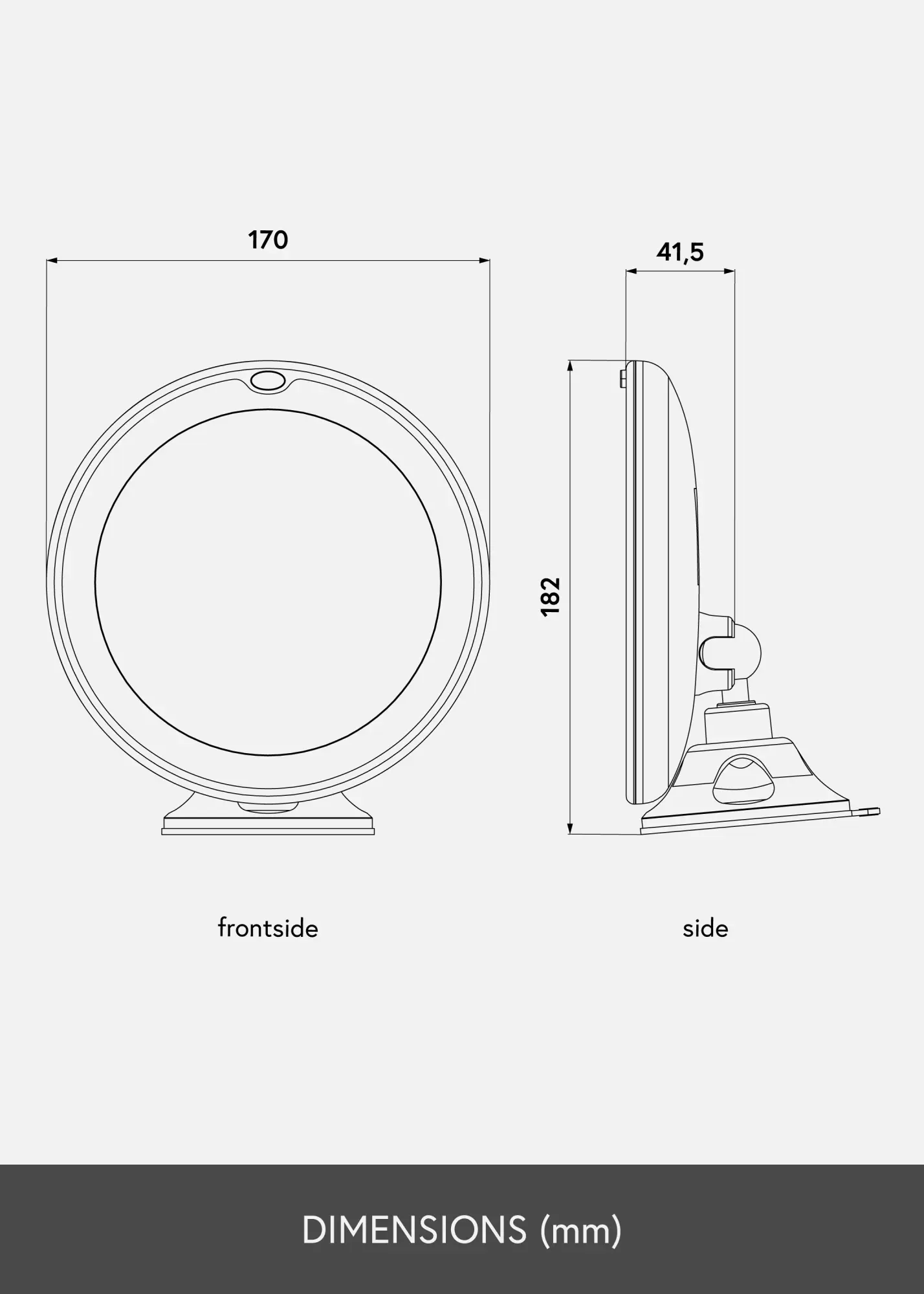 Dit is een klassieke badkamerspiegel van KAILA in een flexibel design. De elegante spiegel heeft een geïntegreerde LED-verlichting die het spiegelglas omlijst. De badkamerspiegel meet 17 cm in diameter en heeft een vergroot spiegelglas met 5x zoom. Met andere woorden, deze spiegel is uitstekend geschikt om een ??scherpe close-up van je gezicht te maken! De spiegel is decoratief als interieurdetail, maar door het flexibele ontwerp kan de spiegel ook gemakkelijk worden opgeborgen wanneer deze niet wordt gebruikt. De spiegel wordt met de bijbehorende zuignap aan de muur, tegel of tafel bevestigd. De zuignap is afsluitbaar en zorgt ervoor dat de spiegel stabiel staat. Wordt ongemonteerd geleverd.