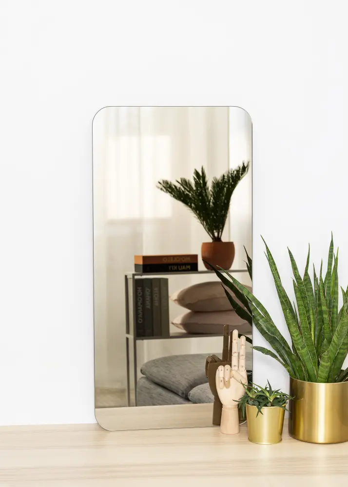 De rechthoekige spiegel is in verschillende afmetingen verkrijgbaar. Deze variant betreft 40x80 cm.