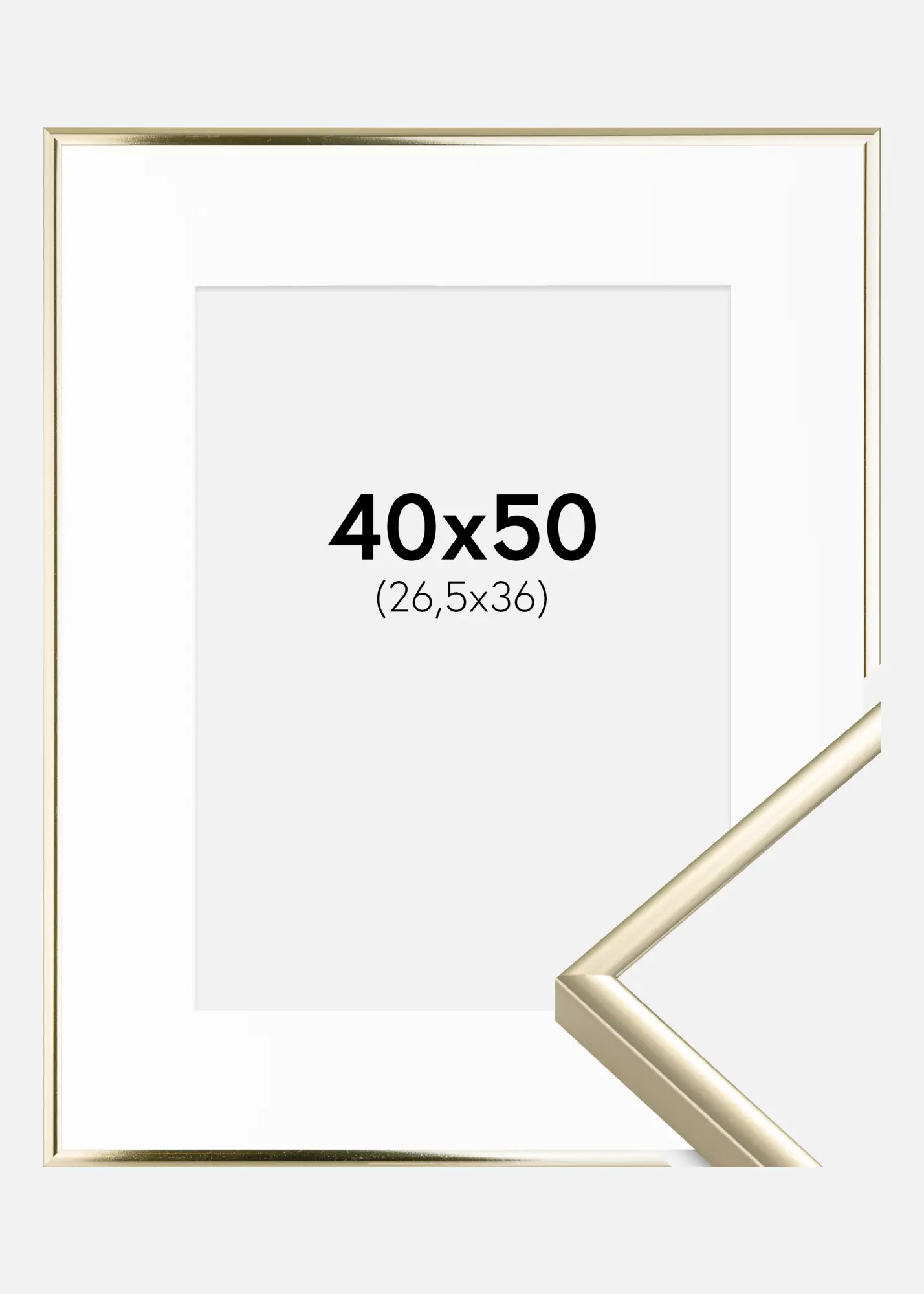 Kader Aluminium Glanzend Goud 40x50 cm - Passe-partout Wit 27,5x37 cm