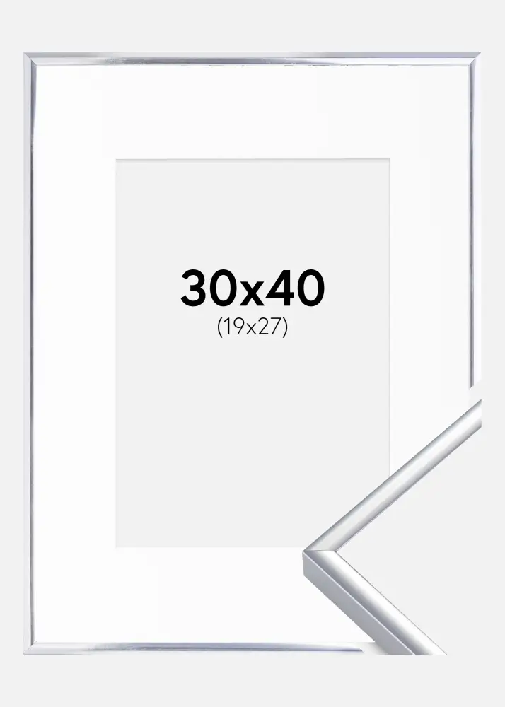Kader Aluminium Glanzend Zilver 30x40 cm - Passe-partout Wit 20x28 cm