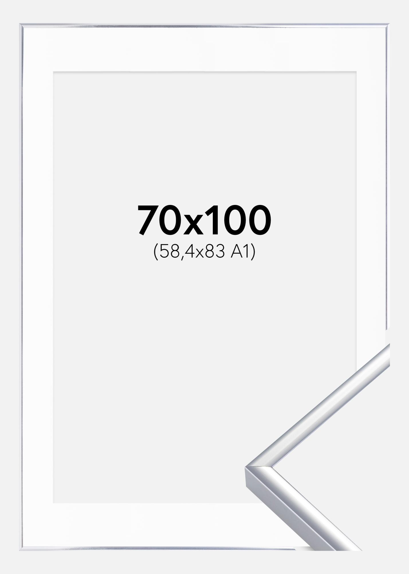 Kader Aluminium Glanzend Zilver 70x100 cm - Passe-partout Wit 59,4x84 cm