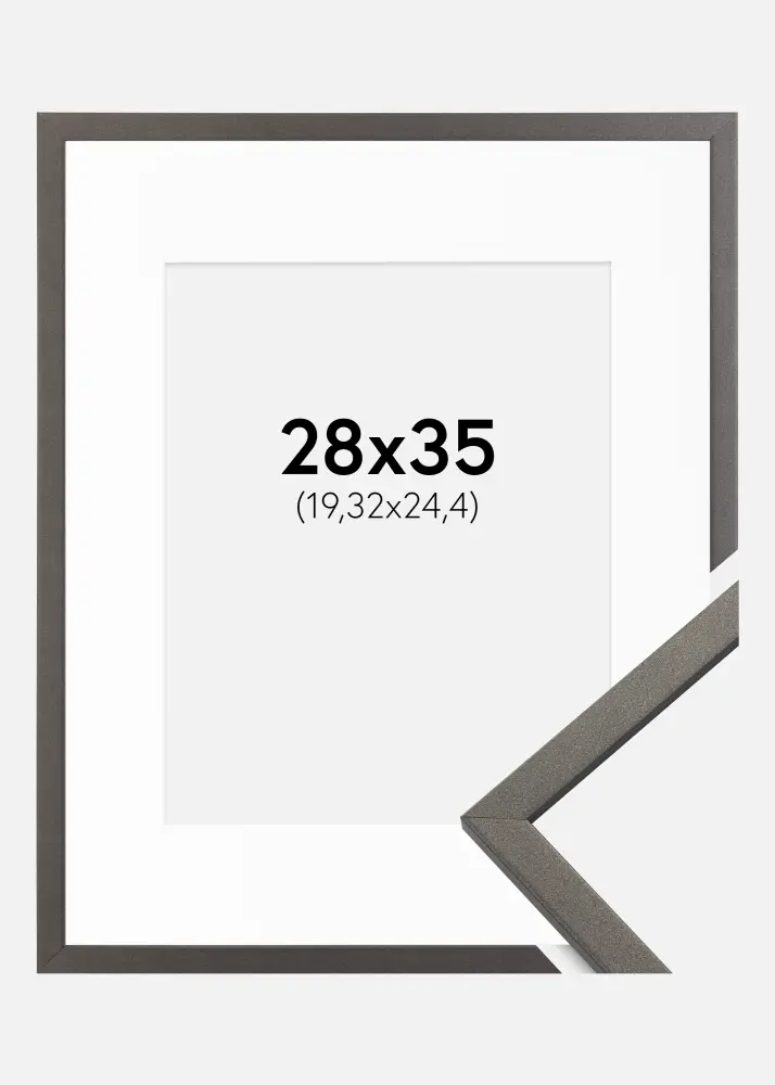 Kader Edsbyn Grafiet 28x35 cm - Passe-partout Wit 8x10 inches