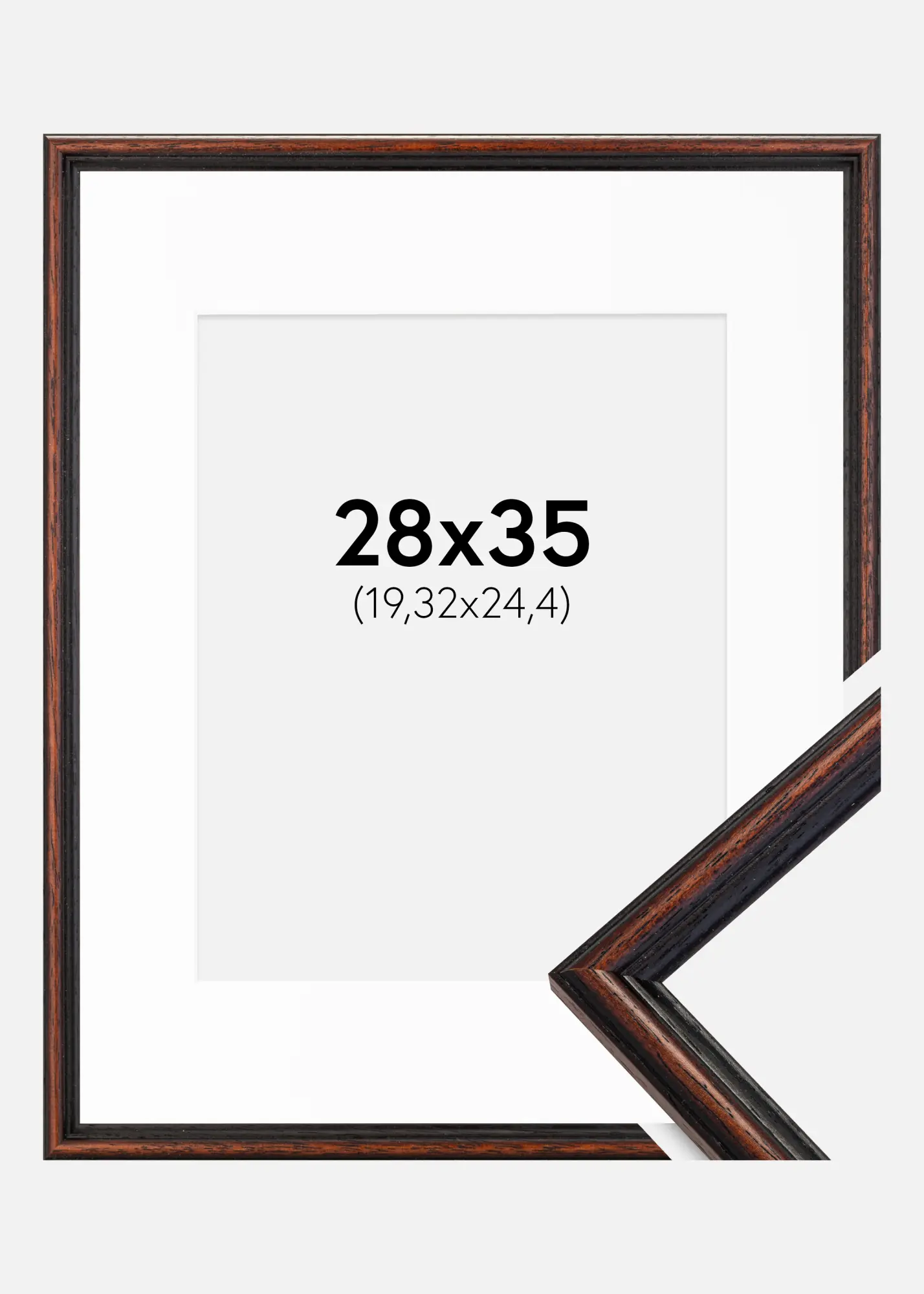 Kader Horndal Walnoot 28x35 cm - Passe-partout Wit 8x10 inches