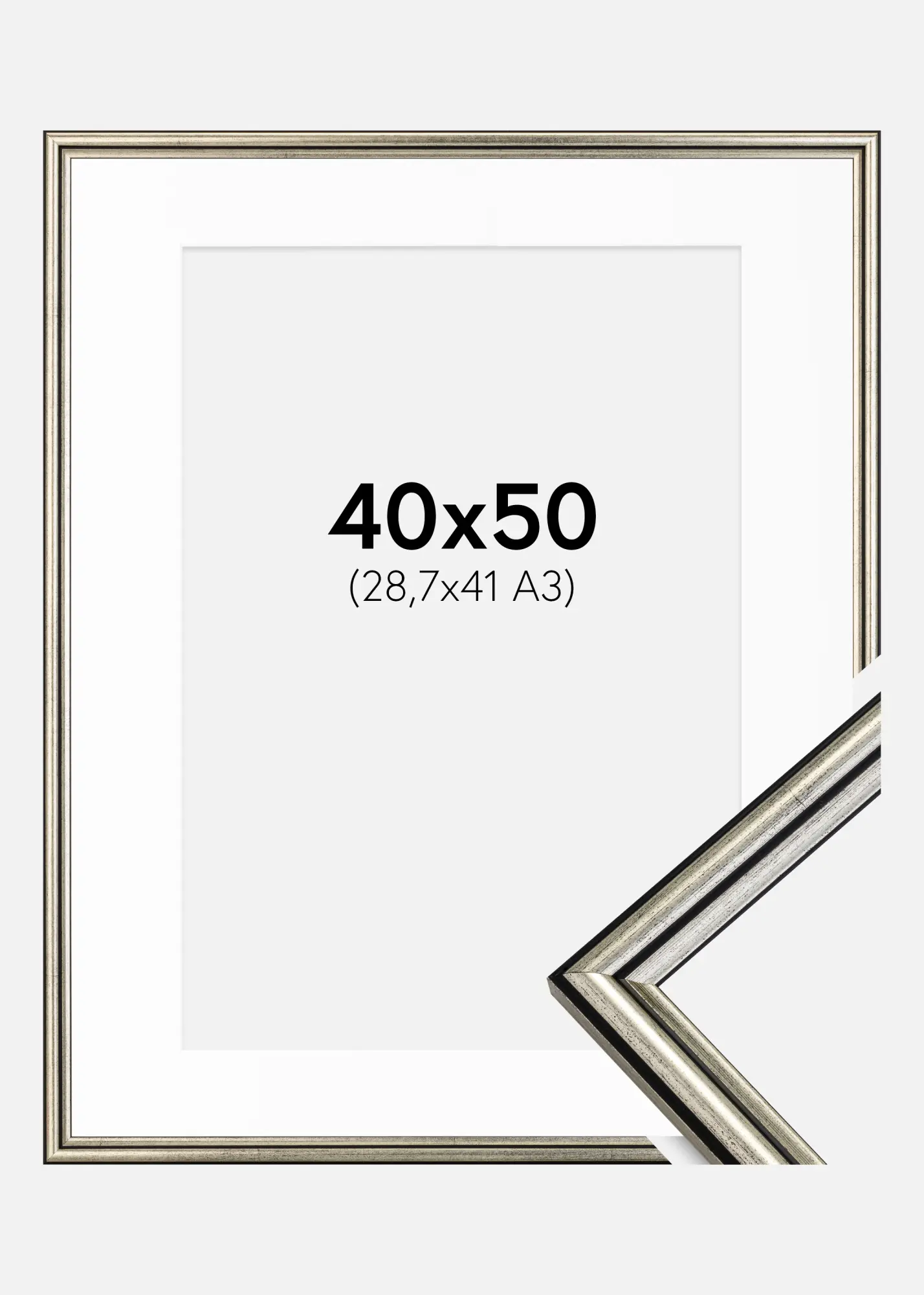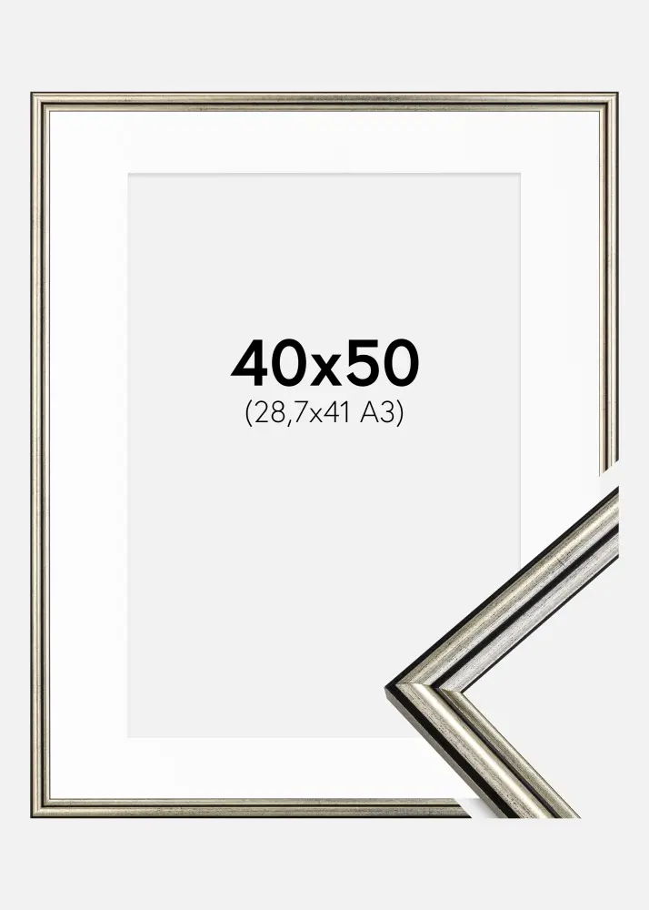 Kader Horndal Zilver 40x50 cm - Passe-partout Wit 29,7x42 cm