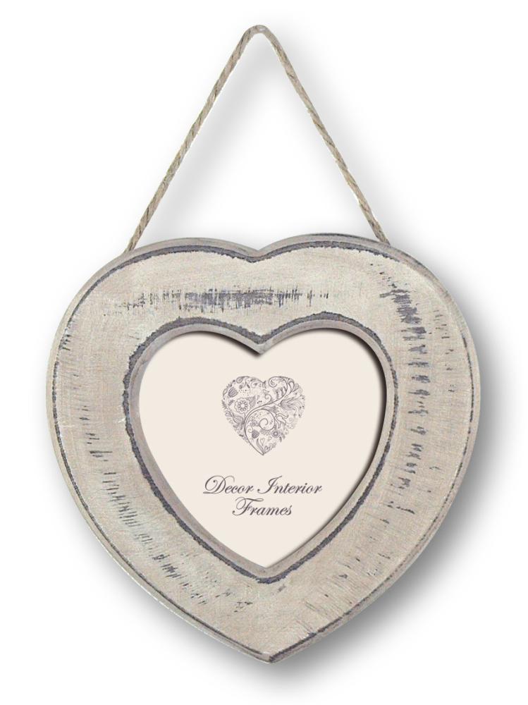 Le Havre is een mooie lichtgrijze Vintagekader in de vorm van een hart, die klaar is om aan de muur gehangen te worden aan zijn retro-hennepkoord.