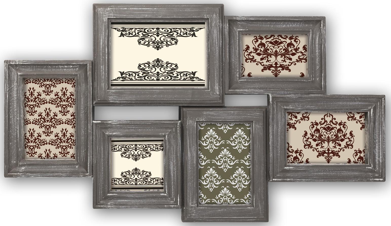 Prachtig grijs multi kader dat zowel portret- als landschapsfoto's mooi inlijst. Het grijze frame is gemaakt van hout en heeft witte elementen die het een rustieke uitstraling geven. Dit collagekader heeft ruimte voor 6 afbeeldingen in beeldformaat 9x13 cm, 10x10 cm, 10x15 cm en 13x18 cm. Het ontwerp van het kader maakt het mogelijk om te combineren met andere schilderijen aan de muur of om alleen te laten hangen om je dierbaarste fotoherinneringen te benadrukken. De buitenafmetingen van het frame zijn 66x38 cm en heeft wandbevestiging.