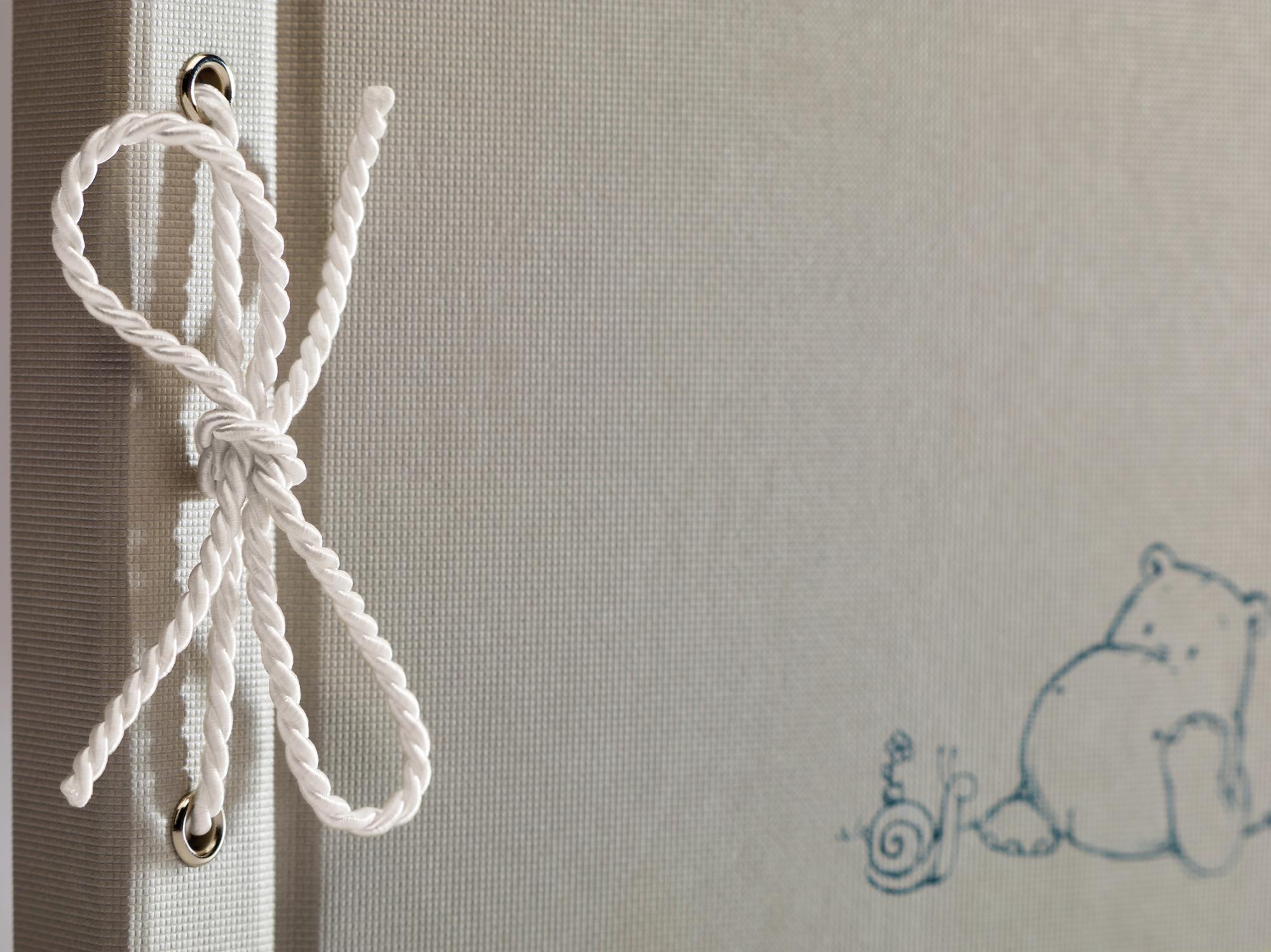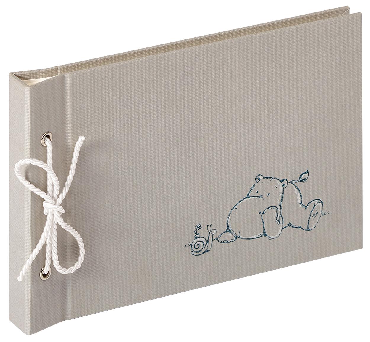 Mooi fotoalbum van uitmuntende kwaliteit, dat geschikt is voor baby- en kinderfoto's. De kaft voelt als zacht textiel en is decoratief ingebonden met een satijnen koord. Voorop staan de schattige afbeeldingen van een nijlpaard en een slak. Het album heeft 20 witte bladen met daarop onderaan het lieve nijlpaard en regels voor eigen tekst. Dit mooie album is perfect voor het eerste levensjaar van je baby of voor het maken van een familiealbum voor je kind met daarin grappige gebeurtenissen.