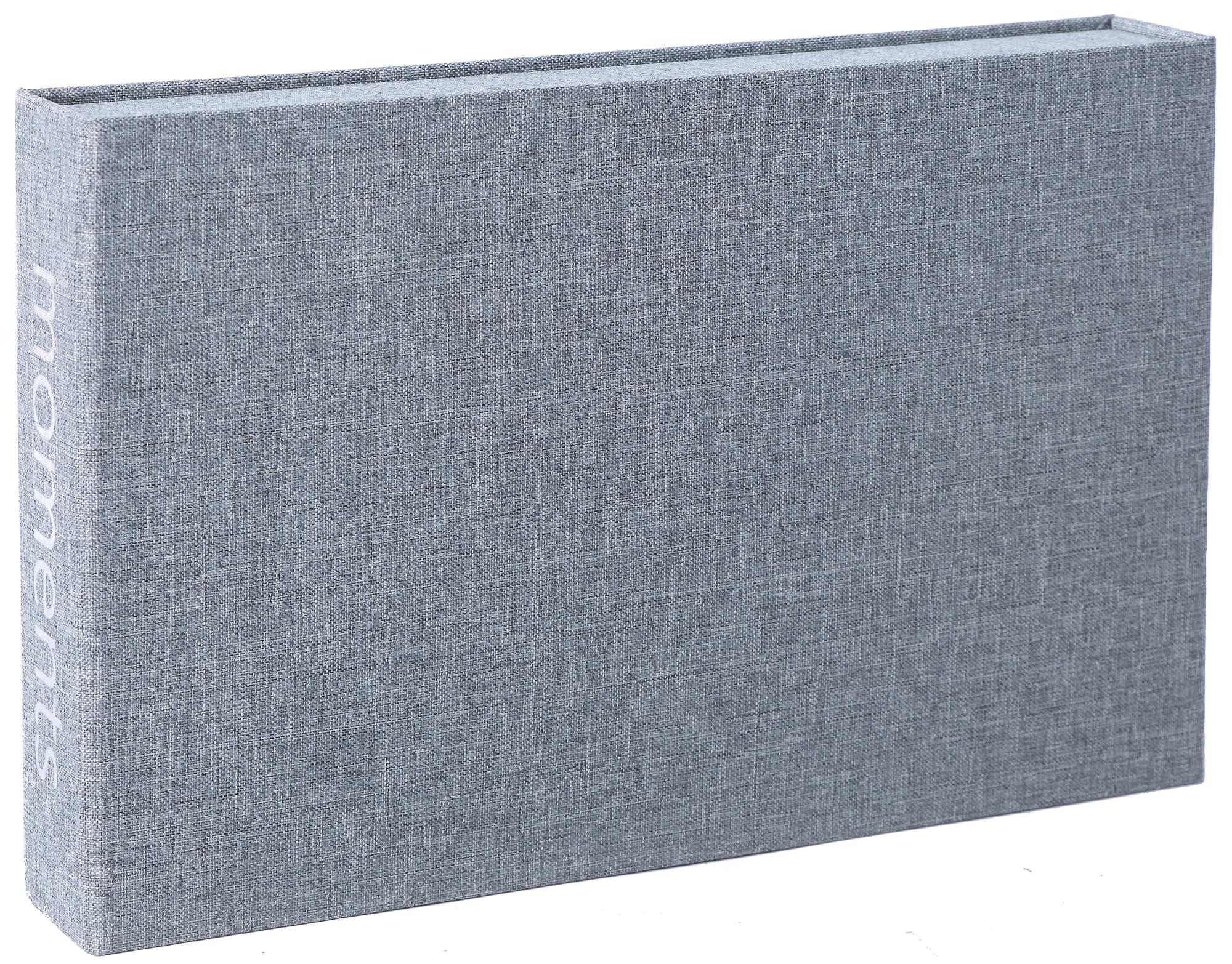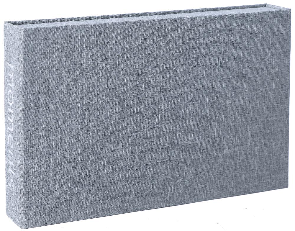 Dit is een prachtig fotoalbum in stijlvol design en een exclusief gevoel. De kaft is gekleed in grijs linnen en de rug is gedecoreerd met een elegante zilveren afdrukking met de tekst ”moments”.