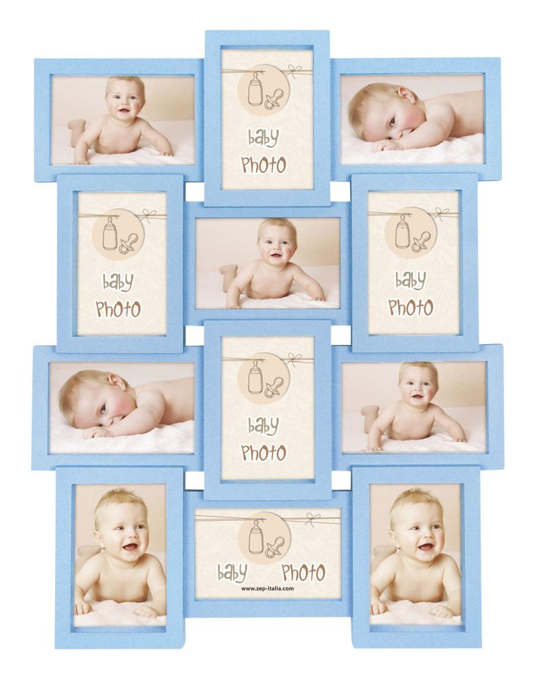 Plaats de 12 liefste, leukste en mooiste foto's van je kleintje in deze mooie collagelijst! De fotolijst is gemaakt van lichtblauw plastic met glas over de foto-openingen en een muurbevestiging aan de achterkant. Kies bijvoorbeeld 1 foto uit elke maand van het eerste levensjaar van je kleintje.