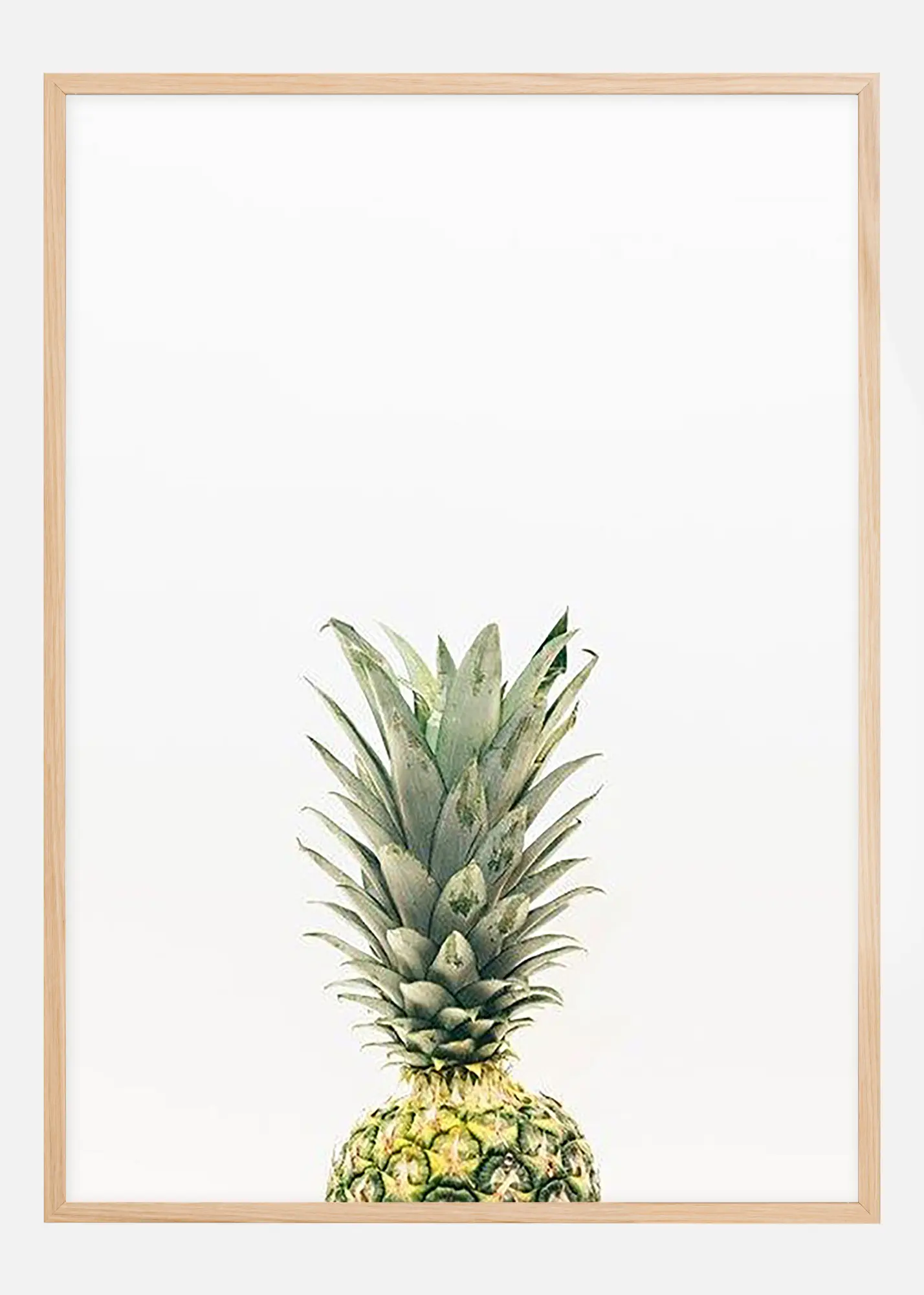 Een botanische poster in moderne stijl van een ananas tegen een witte achtergrond. Een strak en stijlvolle fotografie die zowel past in een fotolijstenmuur in de keuken, als in de woonkamer. Vul het gerust aan met iets uit ons grote assortiment van fotolijsten.