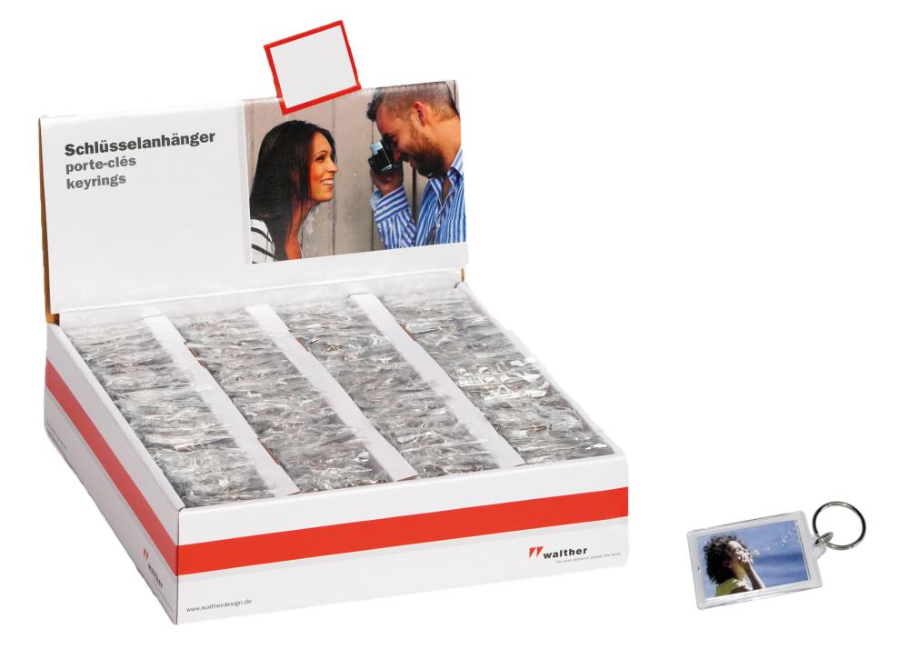 Start de lijstkiezer »sleutelhanger van doorzichtig plastic met plaats voor twee foto's van 3,5x4,5 cm.