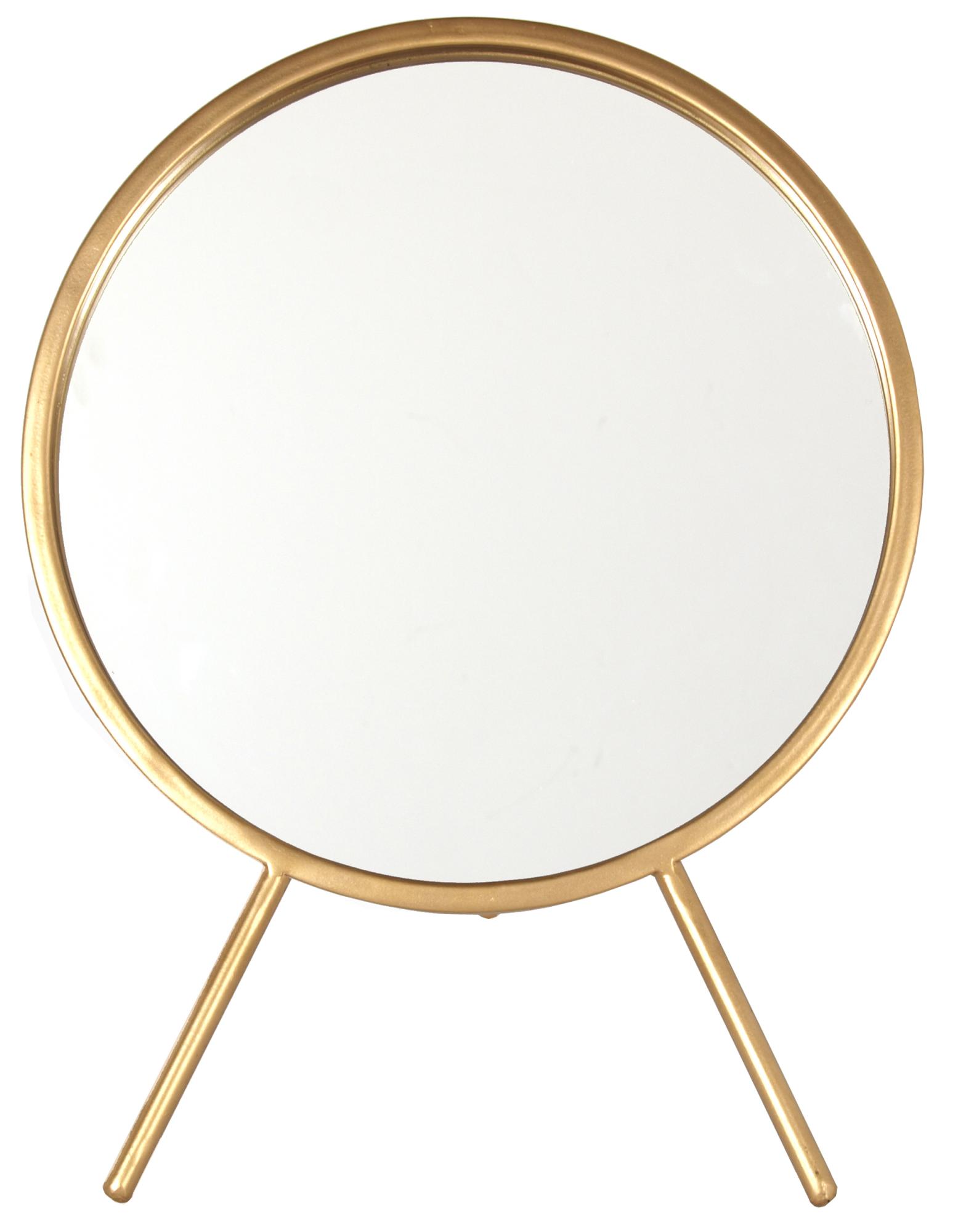Deze stoere tafelspiegel met Scandinavisch design heeft een diameter van 30 cm en een messingkleurige lijst. Staat stabiel en zal zeker een mooie toevoeging zijn aan je huis.
