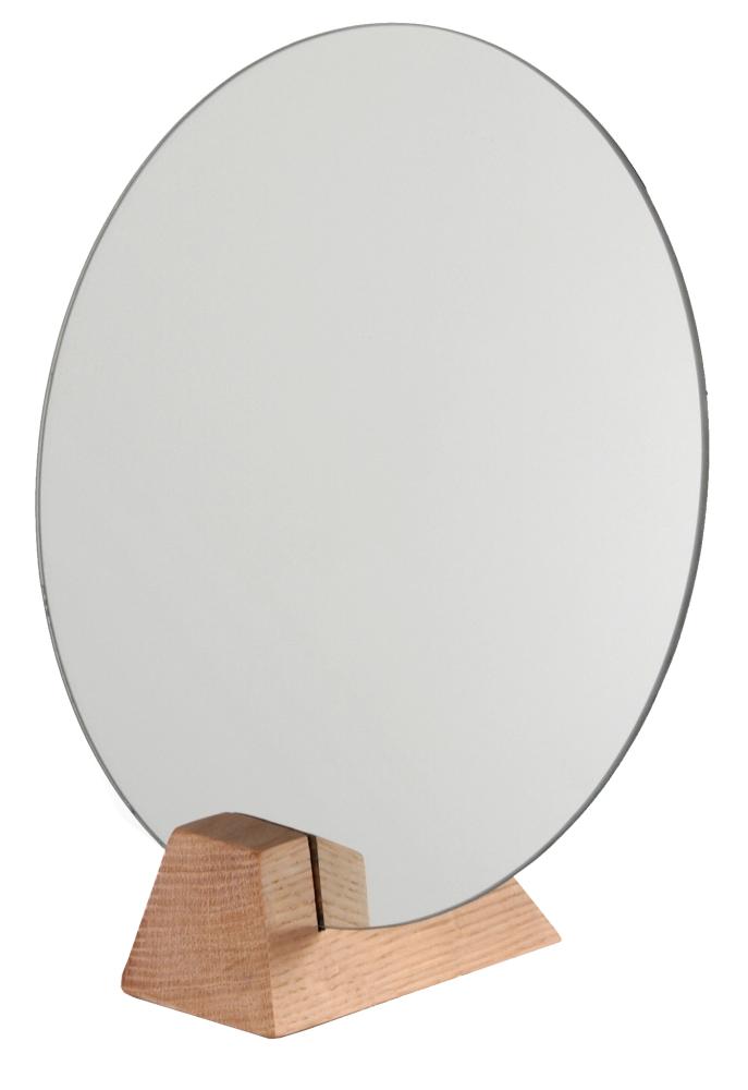 Met zijn elegante design, eikenhouten steun en frameloze spiegelglas, zal deze spiegel een prachtig element zijn in ieder trendbewust huist. Hij heeft een diameter van 30 cm en is er ook met een zwarte steun.