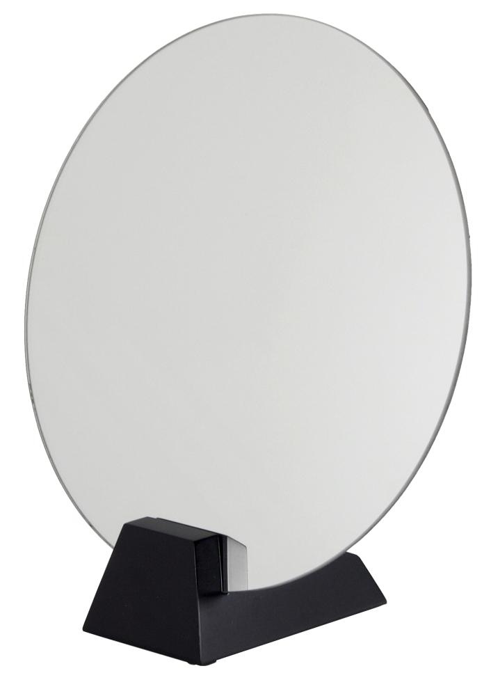 We mogen de Scandinaviërs bedanken voor het design van deze coole tafelspiegel. Het frameloze spiegelglas zet je heel gemakkelijk in de zwarte steun. Maat: 30 cm Ø.