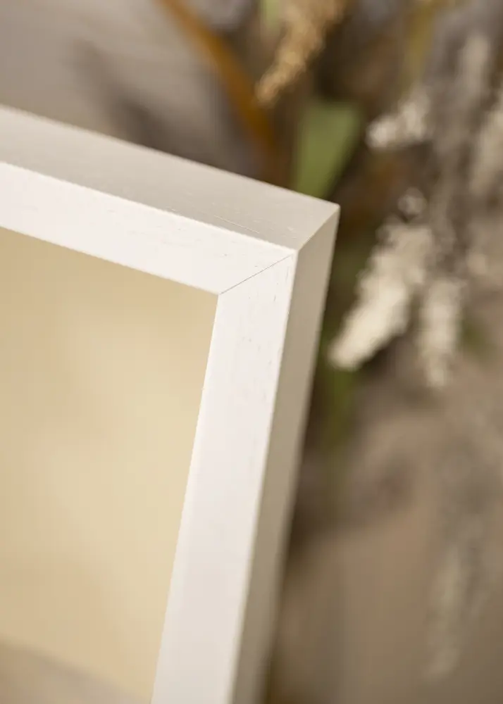 Gävle Wit is een solide houten lijst met een diepte van wel 31 mm die ervoor zorgt dat de lijst een beetje loskomt van de muur.