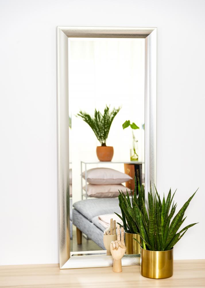 Breng wat meer luxe in je inrichting met deze stijlvolle spiegel! De lijst heeft een geborsteld symmetrisch patroon dat samen met de geslepen glasranden zorgt voor een exclusieve uitstraling. Kies uit de maten 50x130 cm en 60x150 cm.