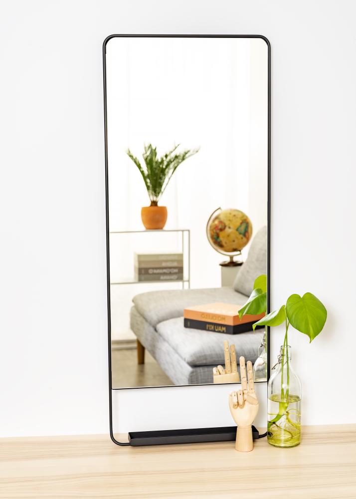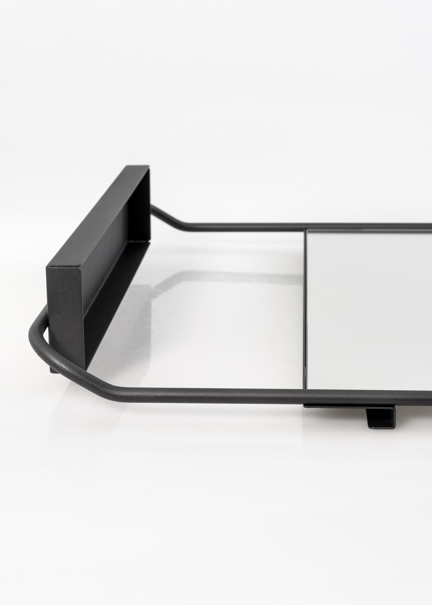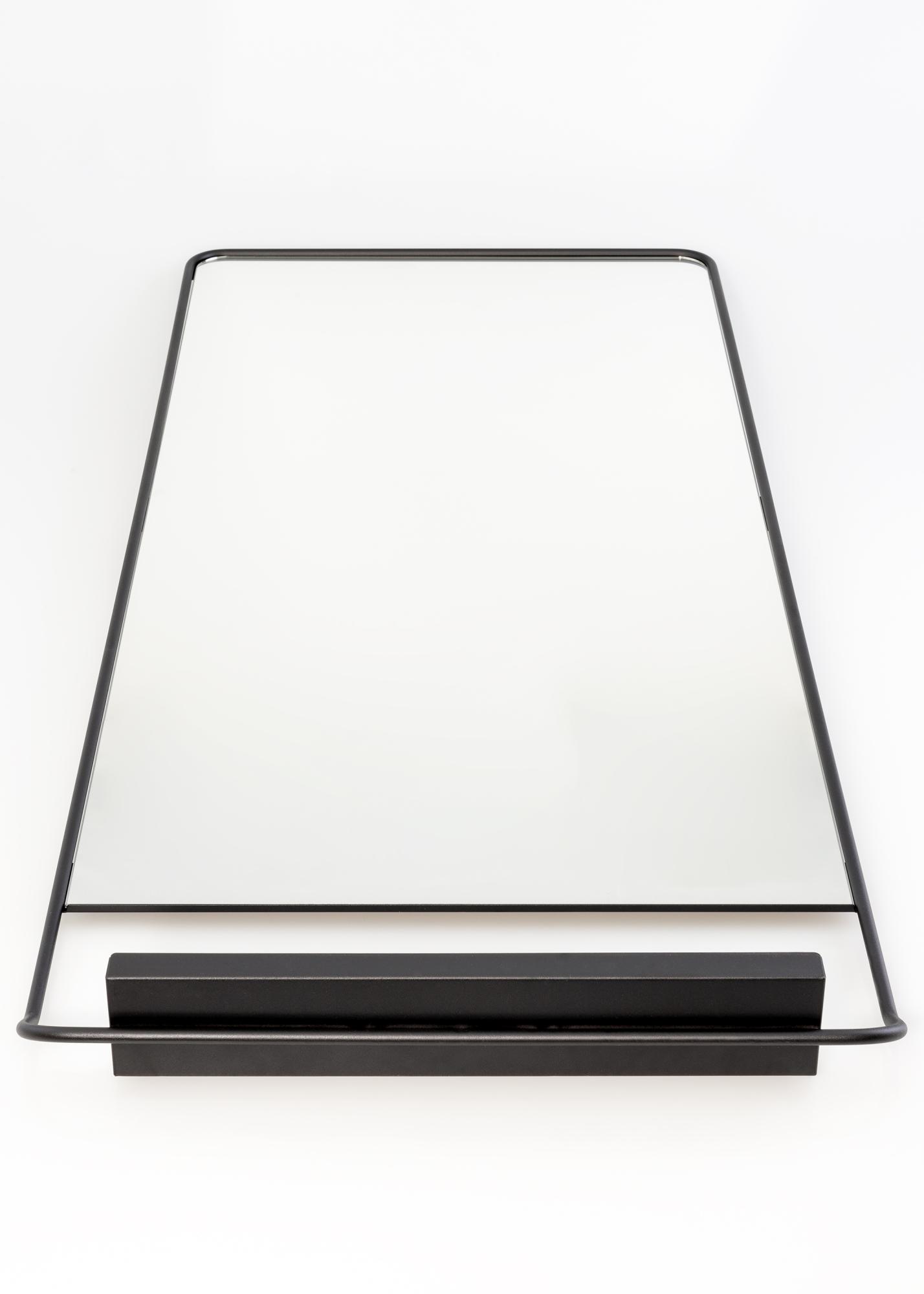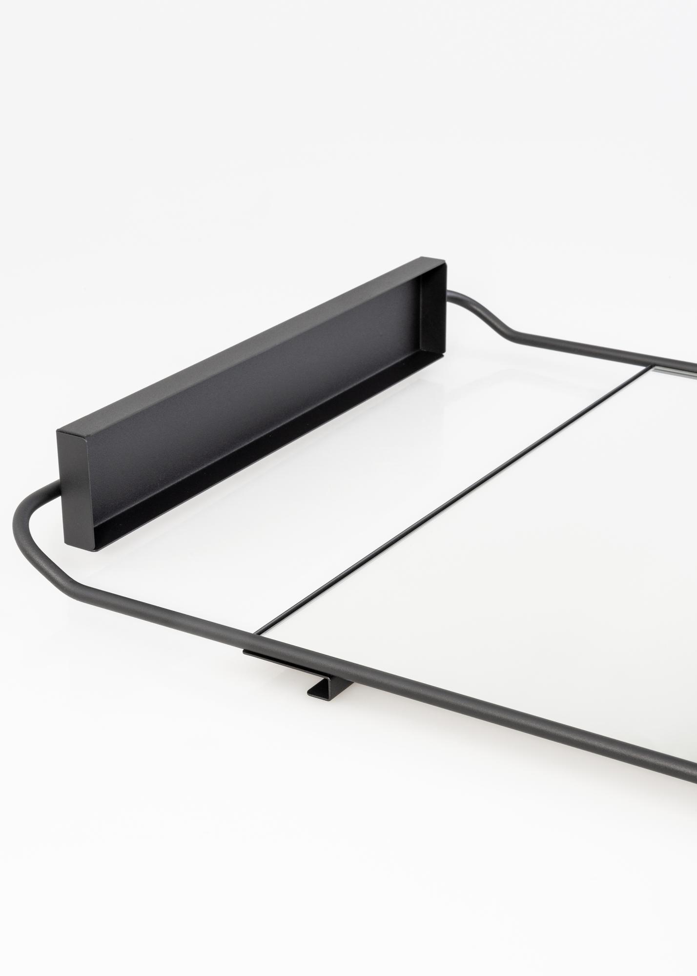 Spiegel met plankje van House Doctor. De spiegel heeft een prachtig tijdloos design met afgeronde hoeken en een smalle zwarte metalen lijst. Perfect voor in de hal of als fraai detail in de slaapkamer.