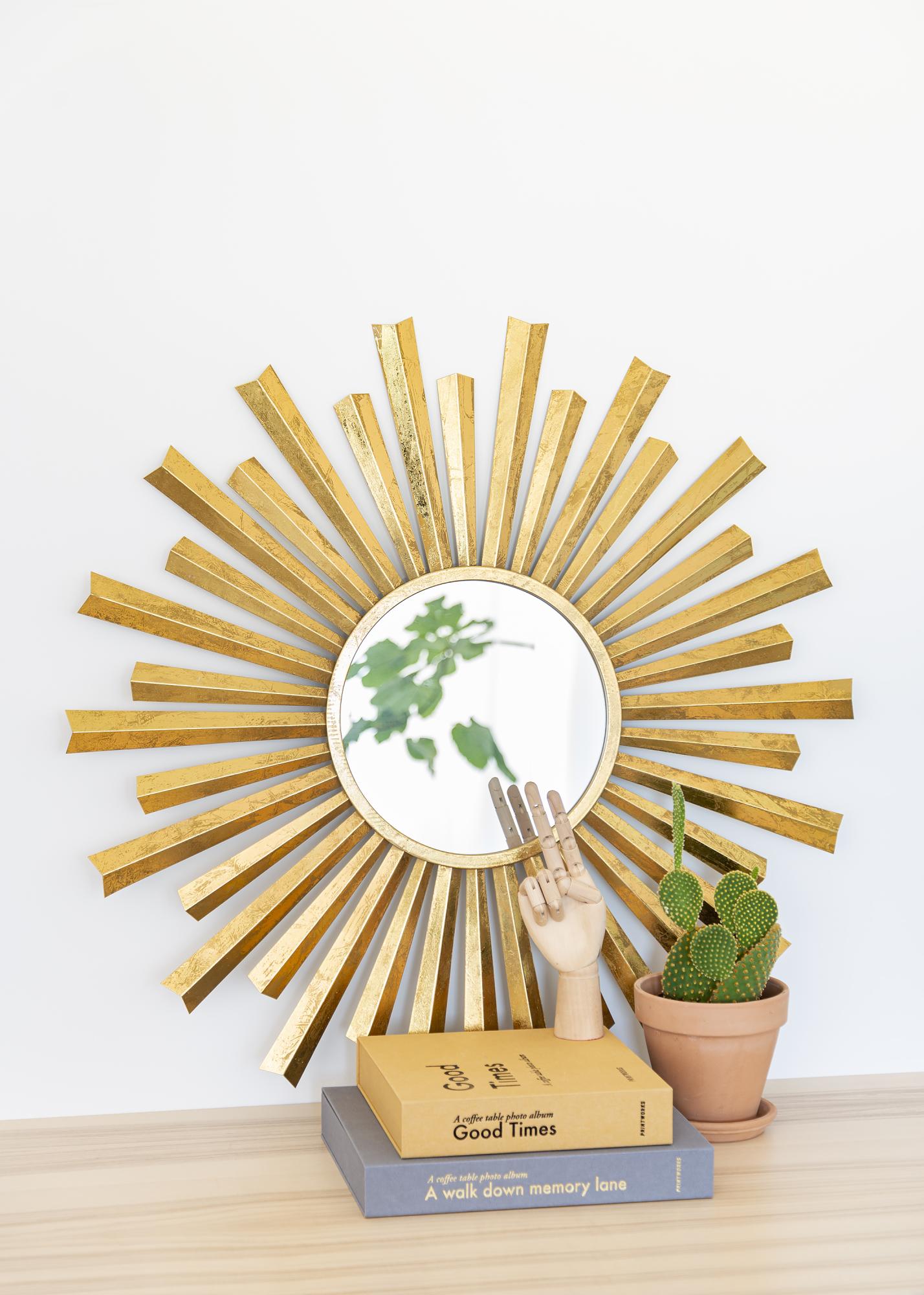 Deze spiegel heeft een stijlvol en elegant design met veel karakter. De spiegel leidt de gedachte naar de zon en alleen dat aspect al maakt deze spiegel erg aantrekkelijk.