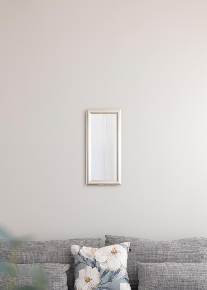 Laat deze wandspiegel een luxe interieurdetail zijn in je huis. De spiegel is geschikt voor in vrijwel alle kamers, dus hang de spiegel in de slaapkamer, hal of in de woonkamer en laat hem het natuurlijke licht van de kamer reflecteren. Een wandspiegel kan in sommige gevallen zelfs de kamer groter doen lijken. Deze spiegel heeft een zilveren houten kader van 30 mm breed, wat voor een luxe uitstraling zorgt.