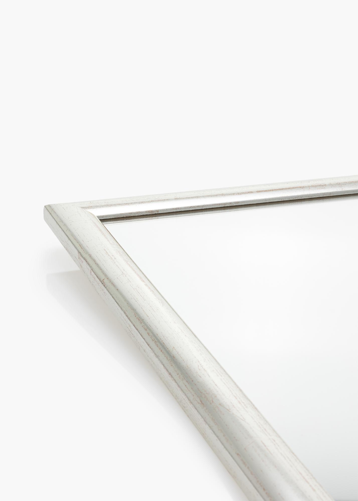 Laat deze wandspiegel een luxe interieurdetail zijn in je huis. De spiegel is geschikt voor in vrijwel alle kamers, dus hang de spiegel in de slaapkamer, hal of in de woonkamer en laat hem het natuurlijke licht van de kamer reflecteren. Een wandspiegel kan in sommige gevallen zelfs de kamer groter doen lijken. Deze spiegel heeft een zilveren houten kader van 30 mm breed, wat voor een luxe uitstraling zorgt.