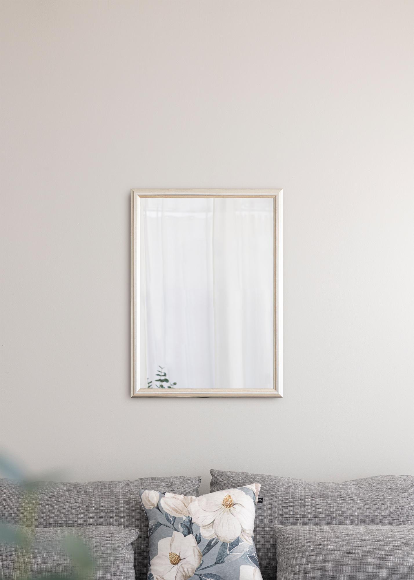 Laat deze wandspiegel een luxe interieurdetail zijn in je huis. De spiegel is geschikt voor in vrijwel alle kamers, dus hang de spiegel in de slaapkamer, hal of in de woonkamer en laat hem het natuurlijke licht van de kamer reflecteren. Een wandspiegel kan in sommige gevallen zelfs de kamer groter doen lijken. Deze spiegel heeft een zilveren houten kader van 30 mm breed, wat voor een luxe uitstraling zorgt.