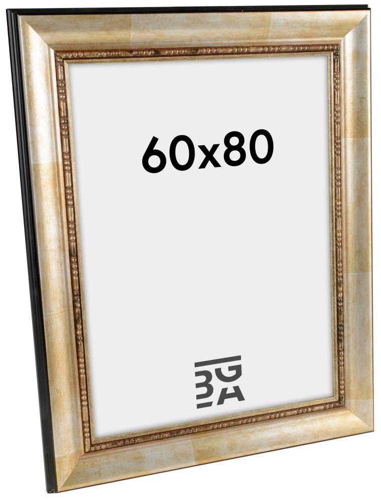 Klassieke portretlijst voor foto's waar je extra veel om geeft. De lijst heeft zwarte zijkanten en is aan de voorzijde zilverkleurig. Direct naast de afbeelding is de lijst gedecoreerd.