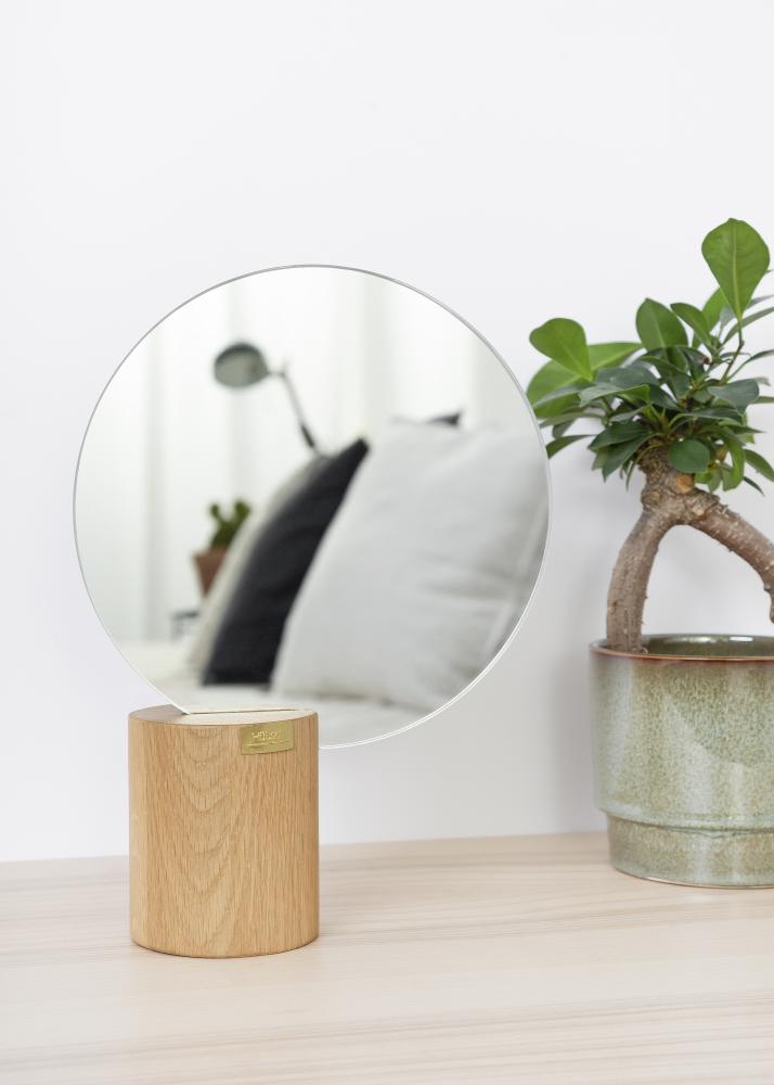 Deze ronde tafelspiegel komt van het Deense merk Hübsch en is werkelijk iets unieks. Het robuuste houten block wat het steun uitmaakt geeft de spiegel een warm en natuurlijk uiterlijk tegelijk dat het ervoor zorgt dat de spiegel een modern design heeft.