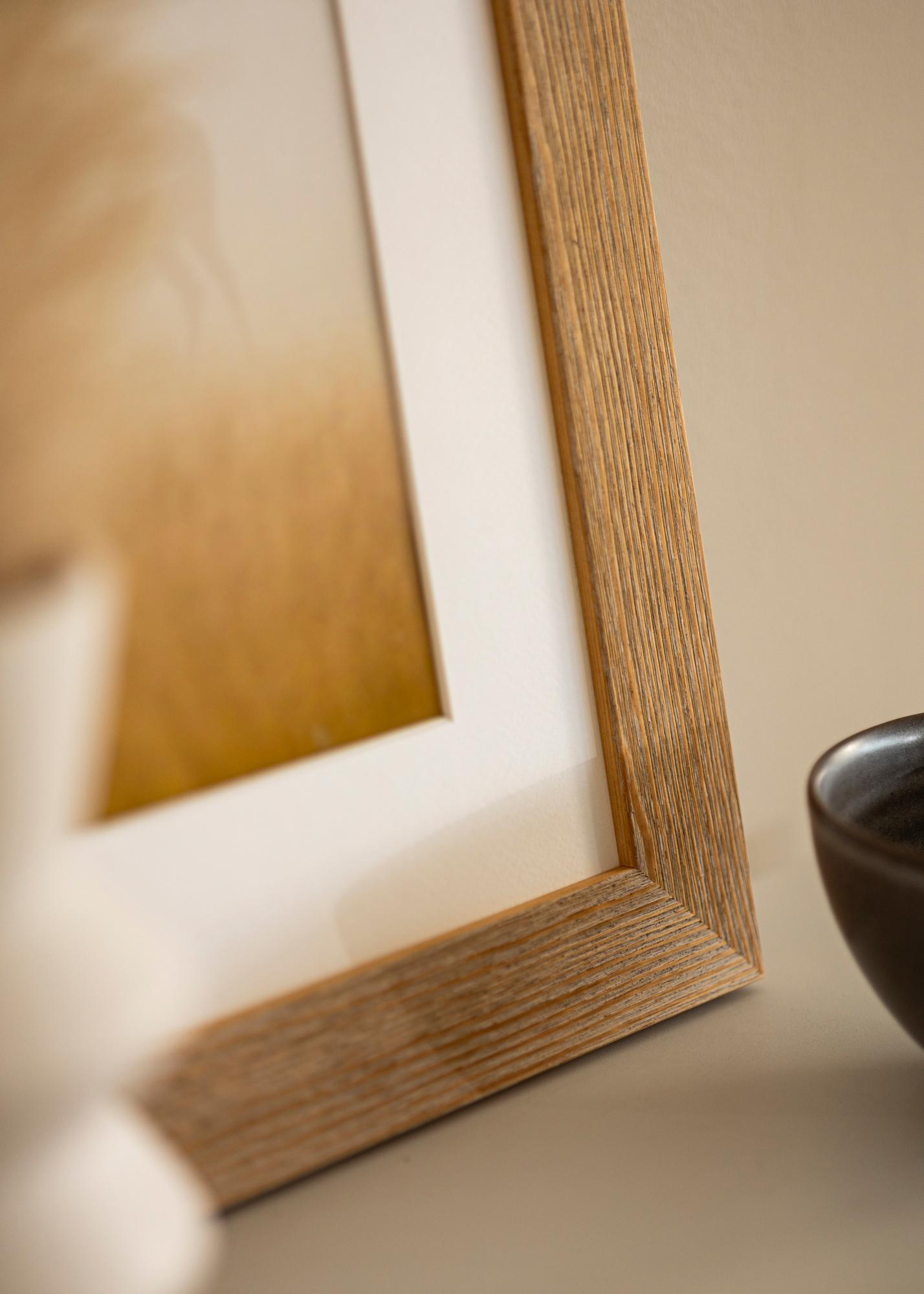 Klassieke houten lijst met duidelijke houtnerven. Geeft een gevoel van natuur- en outdoorleven.