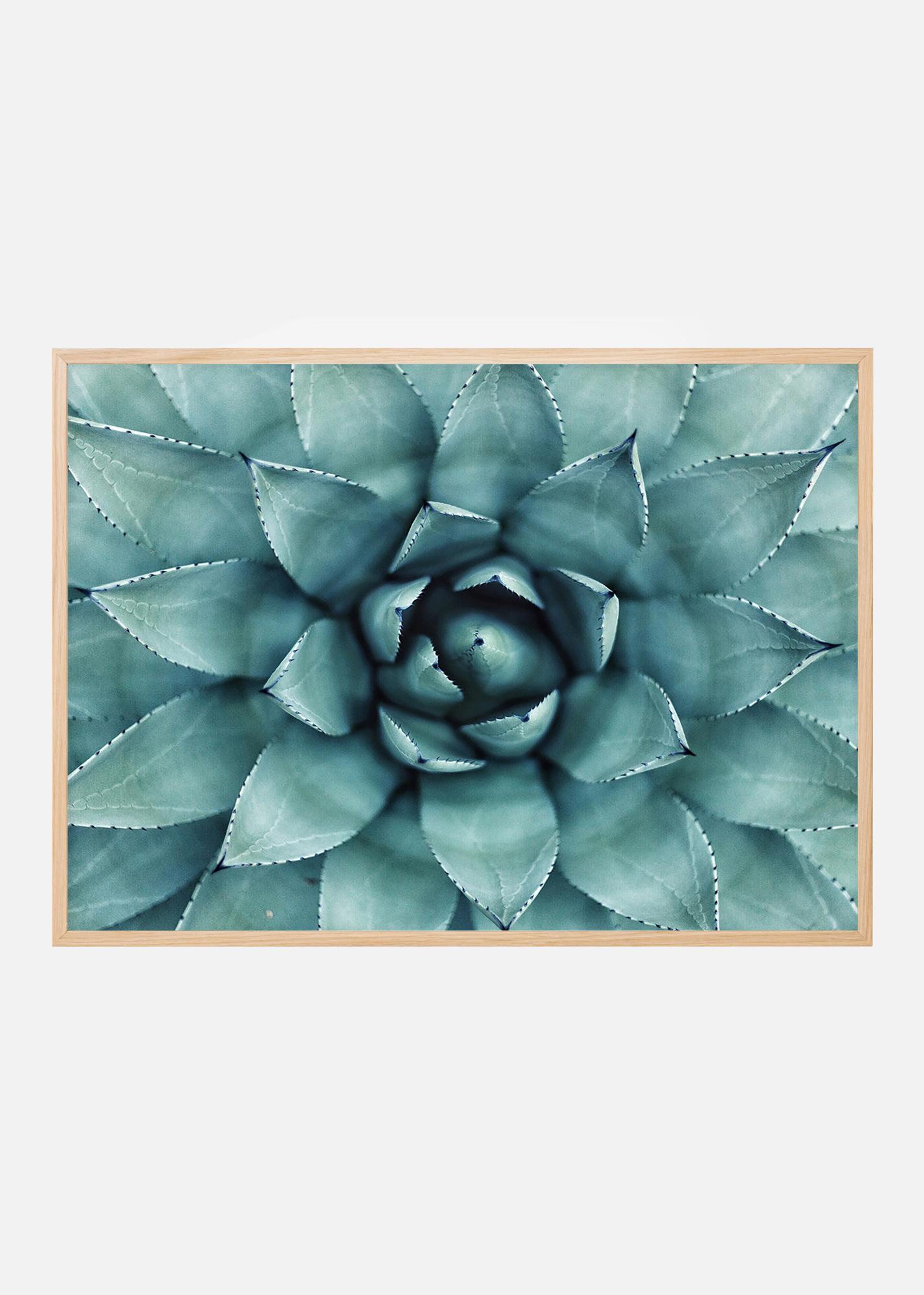 Grafische poster met een prachtige close-up van een groenblauwe cactus. De duidelijke vorm van de bladeren met de donkere doorns en de gedempte turquoise kleur creëren een aantrekkelijk patroon dat goed past bij alle soorten interieurs. Met een donkere lijst als omlijsting komt de foto goed tot zijn recht aan de muur alleen, maar het kan ook worden gebruikt als onderdeel van een fotocollage met planten.