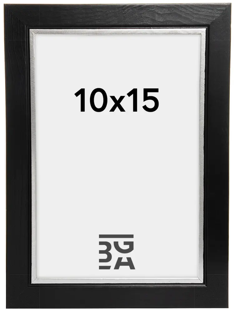 Exclusieve zwarte fotolijst van hout met een kleine extra "twist" in de vorm van een mooie zilverkleurige rand dichtstbij de afbeelding. Een perfecte keuze voor als je een lijst zoekt die extra dimensie aan je afbeelding heeft. Perfect voor op een lijstenplank voor een mooie collage.