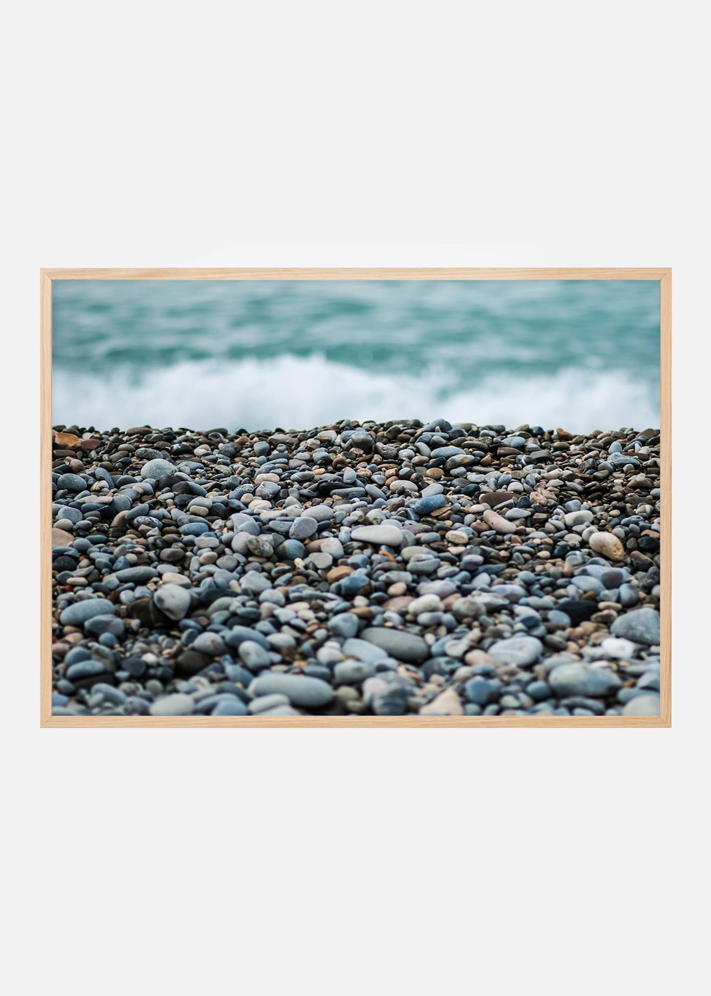 Luister naar het ruisen van de zeegolven vanaf deze poster met een prachtig kiezelstrand op de voorgrond. De korte scherptediepte zorgt voor een interessant beeld dat de ogen naar zich toe trekt. Vind je een stuk rondgeslepen glas tussen de stenen? De grijsblauwe kleurschaal past goed bij een smalle lijst tegen een lichte muur, bij voorkeur met maritieme accessoires.