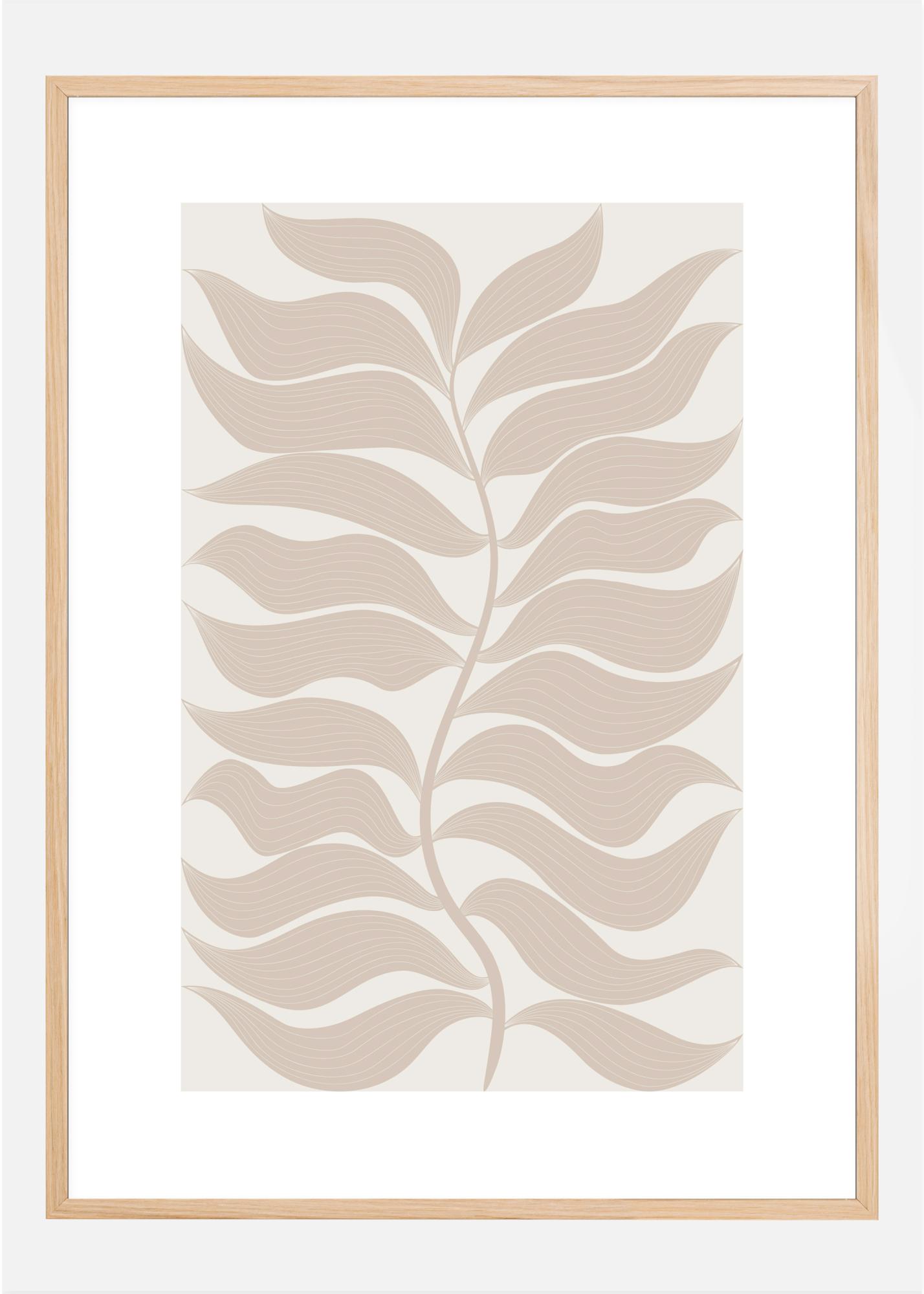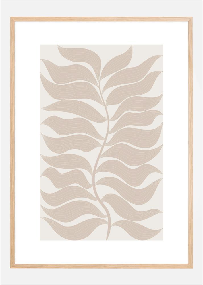 Een botanische poster van een blad. Deze delicate poster geeft een zacht, lieflijk beeld van elf bladeren aan elke kant van de hoofdstengel. Op een witte achtergrond is dit de perfecte poster voor elke natuurliefhebber of iedereen die geïnteresseerd is in bladeren.