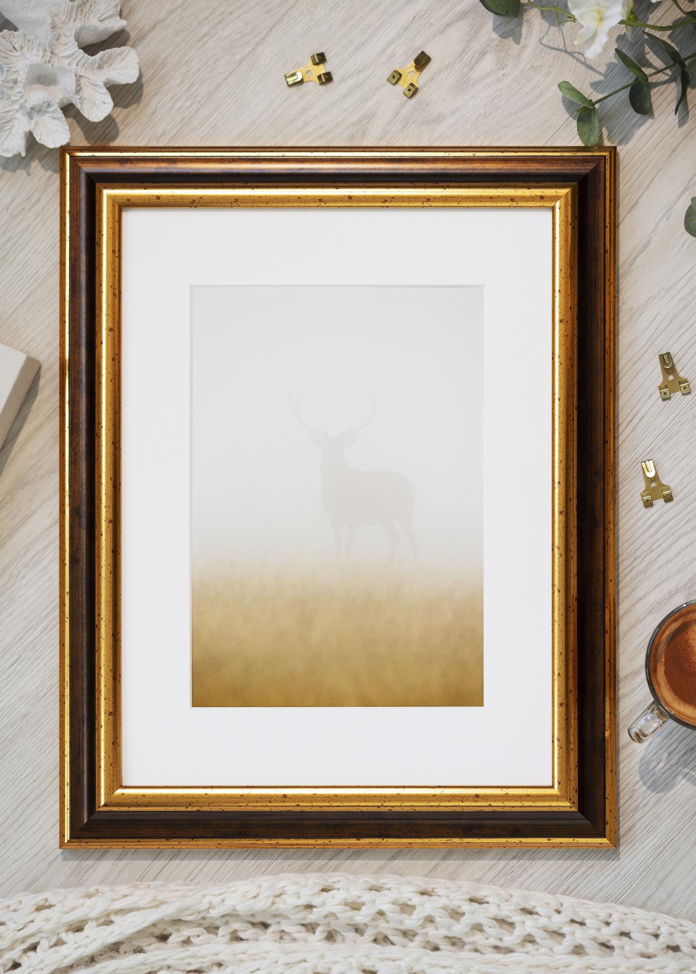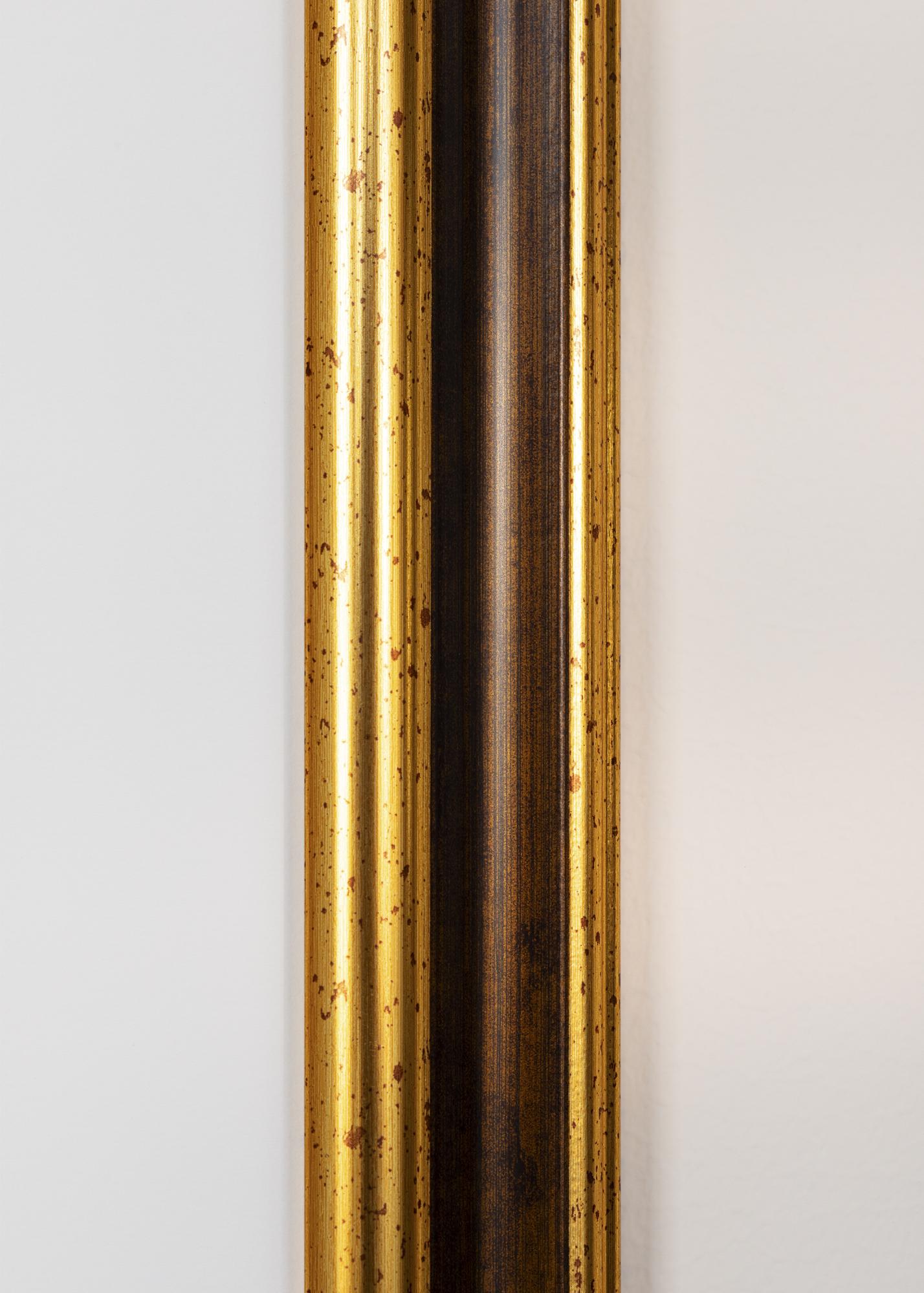 Deze kader in het formaat 21x29,7 cm is een perfecte combinatie van klassieke elegantie en moderne functionaliteit. Met zijn warme goudkleurige afwerking geeft hij je afbeelding een luxe omlijsting die echt in het oog springt. De 45 mm brede lijst met zacht afgeschuinde lijnen zorgt voor diepte, waardoor het beeld extra opvalt aan de muur.