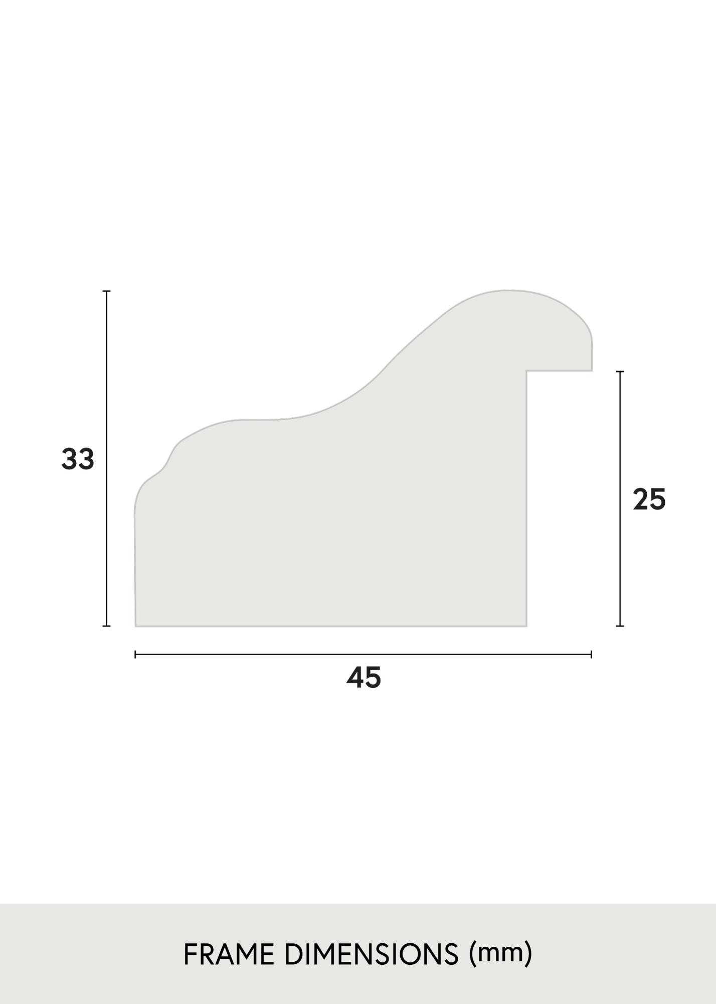 De kader is gemaakt van composietmateriaal, wat zorgt voor zowel stevigheid als lichtheid. Met een diepte van 33 mm heeft deze kader een robuust gevoel, terwijl het profiel toch elegant blijft. De gladde afwerking en gouden tint geven een tijdloze uitstraling, waardoor hij uitstekend past in zowel traditionele, minimalistische als meer luxe interieurs.