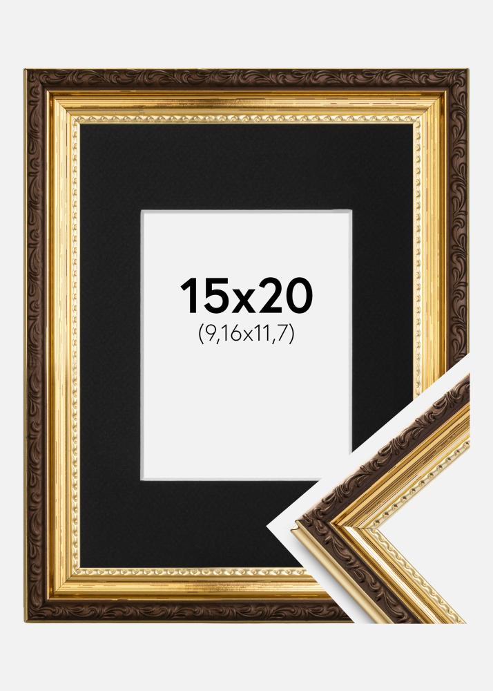 Pakket met een kader en bijpassend zwart passe-partout. In de productafbeelding staan de maten van het kader (vetgedrukt) en de binnenmaten van het passe-partout (aangegeven tussen haakjes). Let op; de binnenmaat van het passe-partout dient altijd 1 cm kleiner te zijn dan de afmetingen van de gewenste afbeelding.