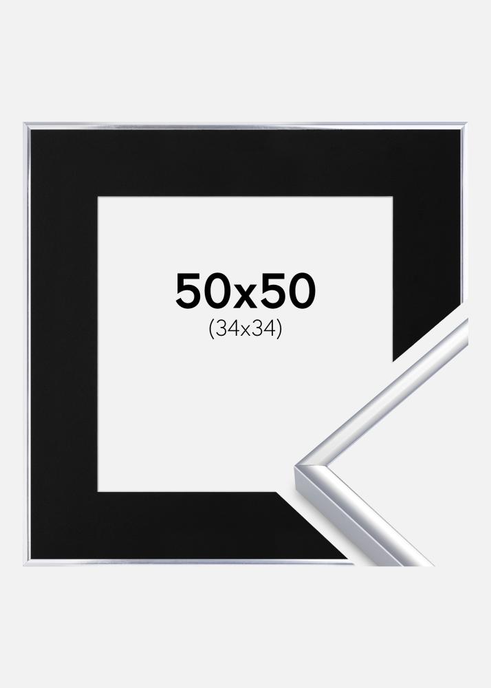 Kader Aluminium Glanzend Zilver 50x50 cm - Passe-partout Zwart 35x35 cm