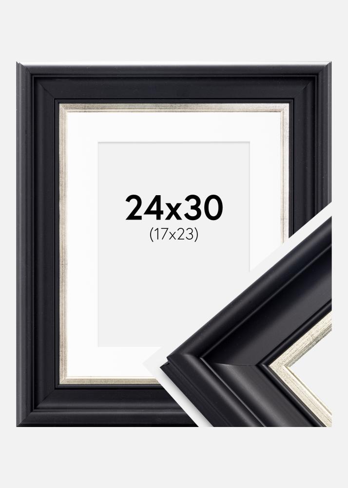 Kader Dalarna Zwart-Zilver 24x30 cm - Passe-partout Wit 18x24 cm