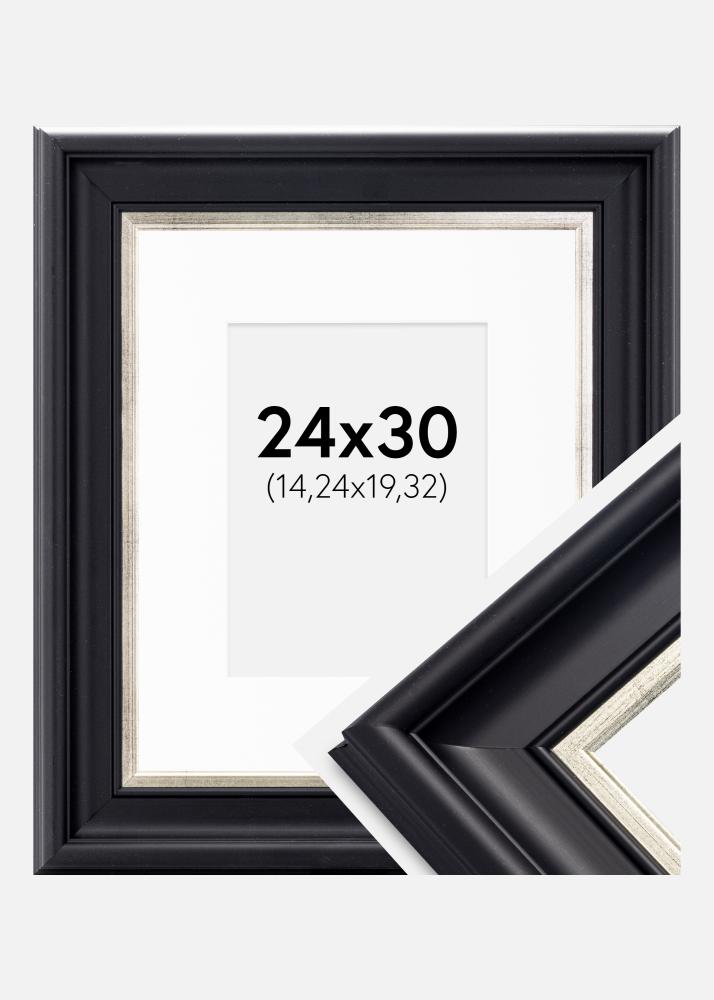 Kader Dalarna Zwart-Zilver 24x30 cm - Passe-partout Wit 6x8 inches