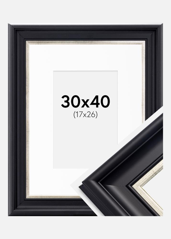 Kader Dalarna Zwart-Zilver 30x40 cm - Passe-partout Wit 18x27 cm