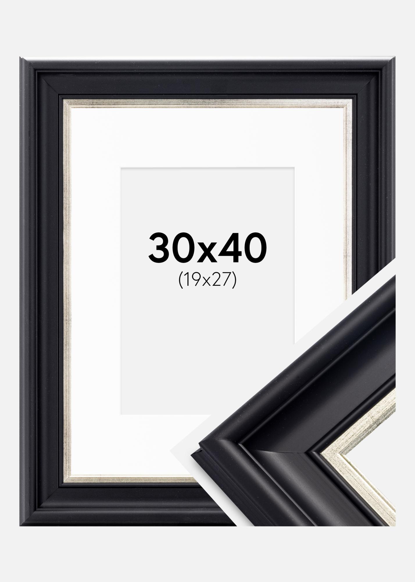 Kader Dalarna Zwart-Zilver 30x40 cm - Passe-partout Wit 20x28 cm