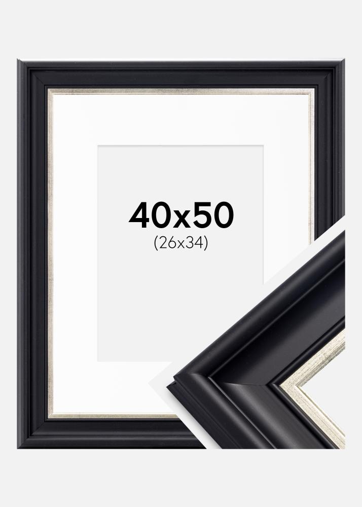 Kader Dalarna Zwart-Zilver 40x50 cm - Passe-partout Wit 27x35 cm