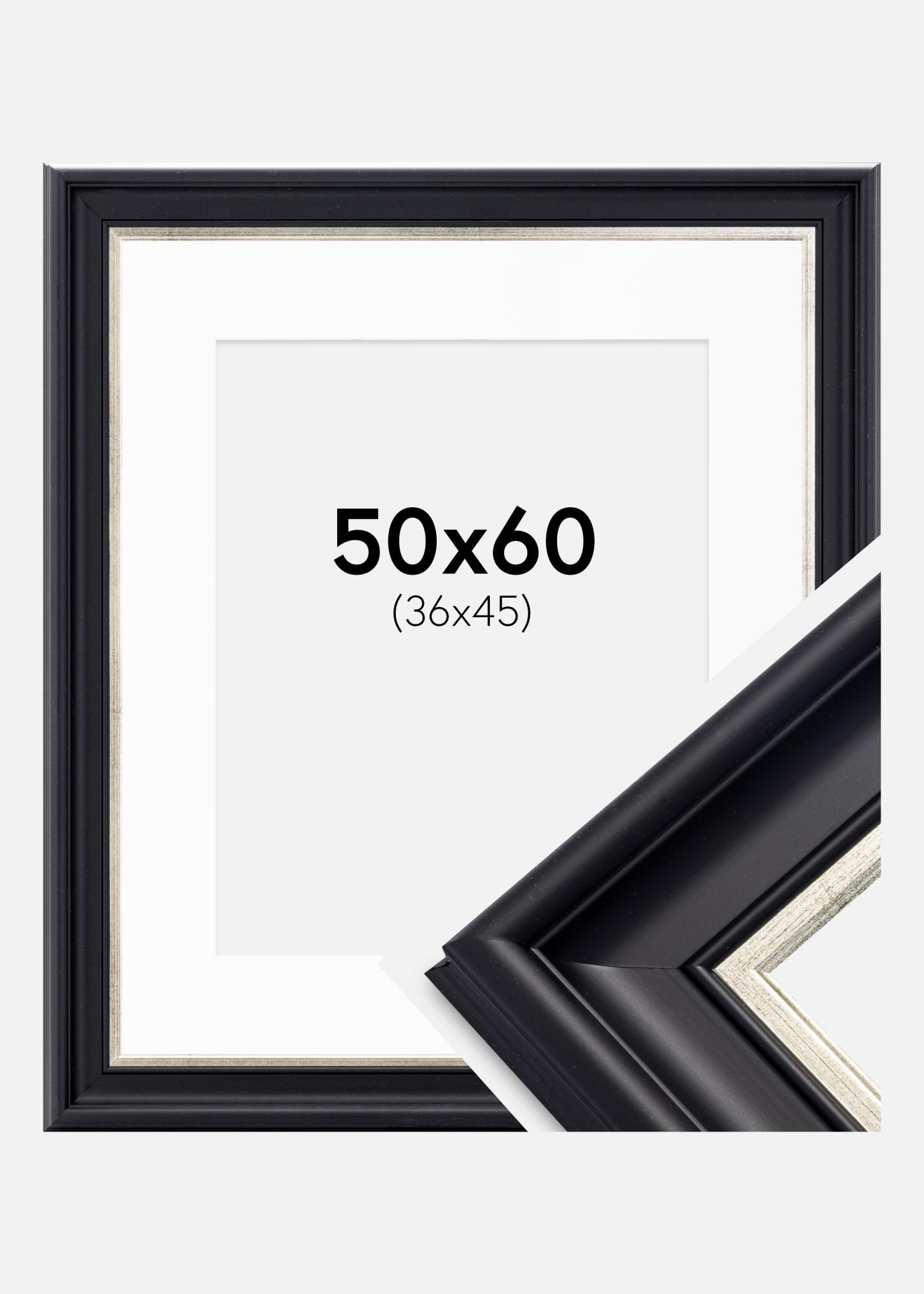 Kader Dalarna Zwart-Zilver 50x60 cm - Passe-partout Wit 37x46 cm