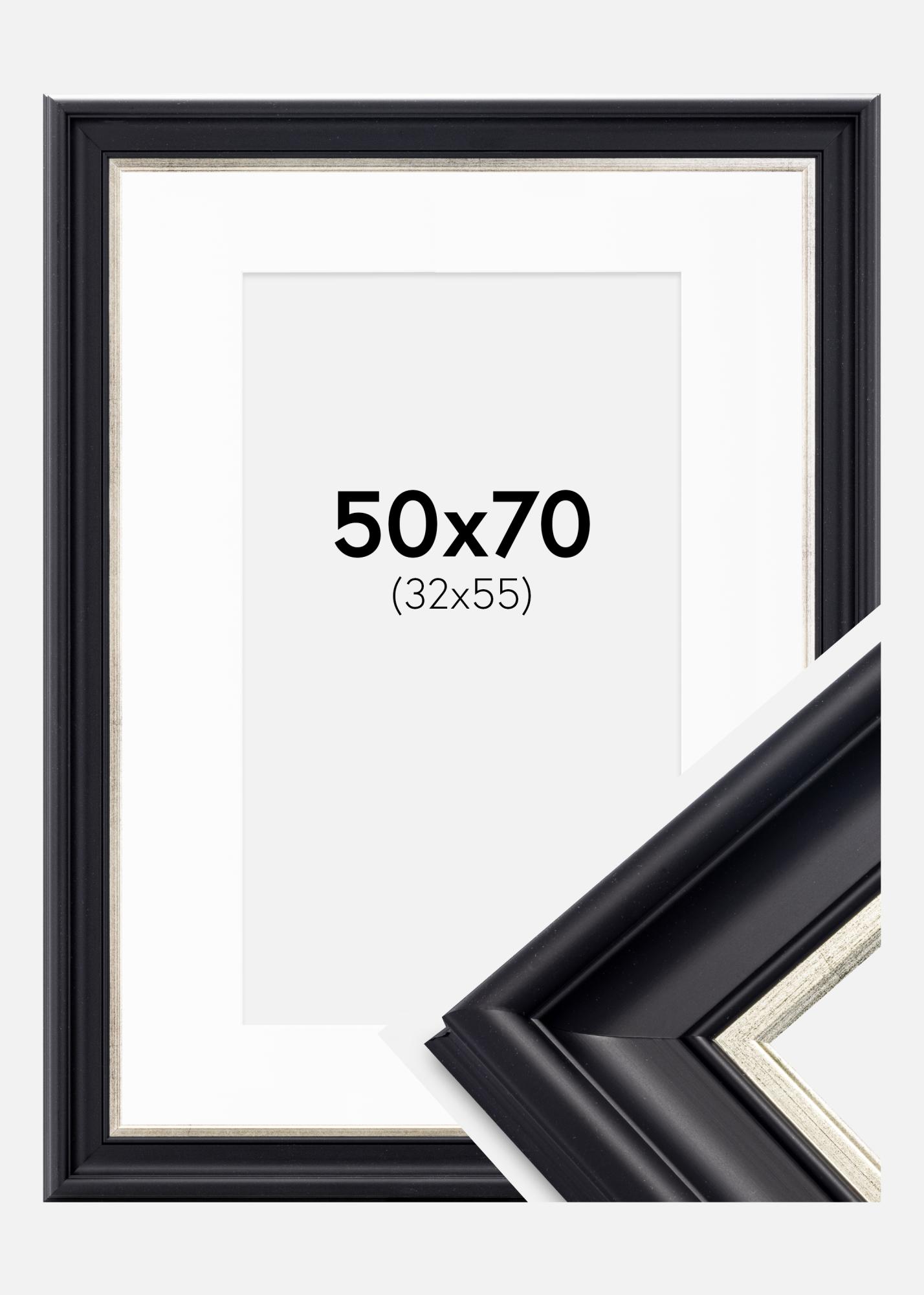 Kader Dalarna Zwart-Zilver 50x70 cm - Passe-partout Wit 33x56 cm