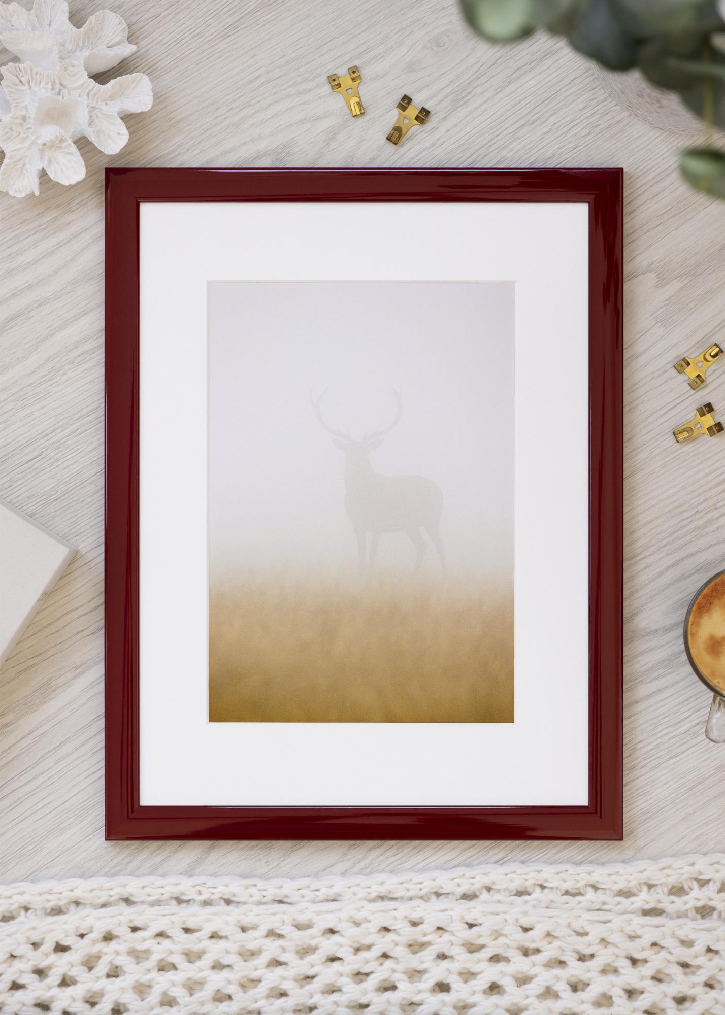 Deze kader in het formaat 59,4x84 cm is een perfecte combinatie van modern design en klassieke elegantie. Met zijn diepe wijnrode tint en glanzende afwerking vormt hij een expressief accent in elke kamer. Het smalle profiel en de scherpe hoeken geven de kader een minimalistische uitstraling, waardoor jouw afbeelding echt centraal staat.