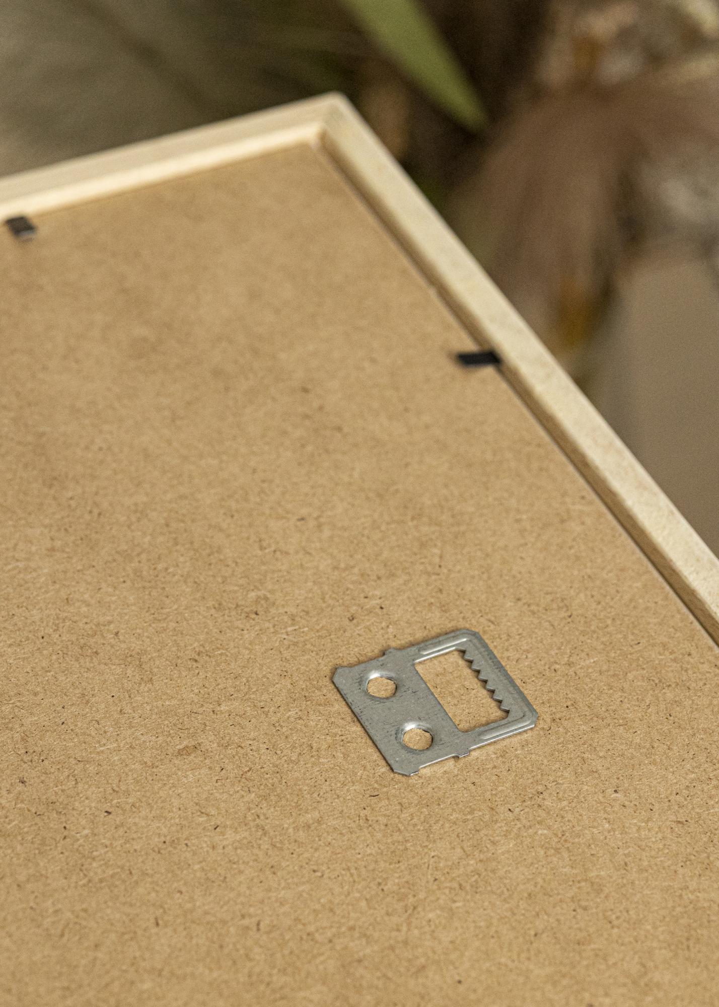 De fotolijst is voorzien van acrylglas, een lichte en onbreekbare glassoort met dezelfde kristalheldere helderheid als gewoon glas. De achterkant is gemaakt van MDF-materiaal en wordt op zijn plaats gehouden door kleine buigbare pinnen. Afbeeldingen kunnen eenvoudig in het frame geplaatst worden door de flexibele pinnen omhoog te buigen, waardoor de achterkant los gemaakt kan worden. Het kader kan zowel staand als liggend aan de muur worden bevestigd, zodat je flexibel bent in je keuze van afbeeldingen.